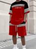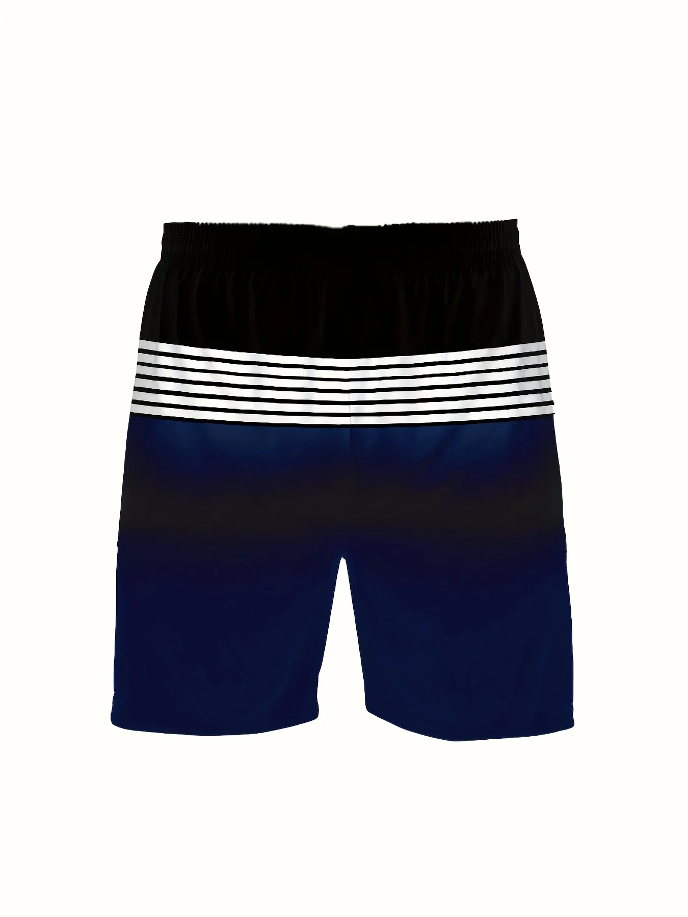 Men’s summer breathable and comfortable round neck T-shirt top shorts set with striped pattern print outdoor two-piece set