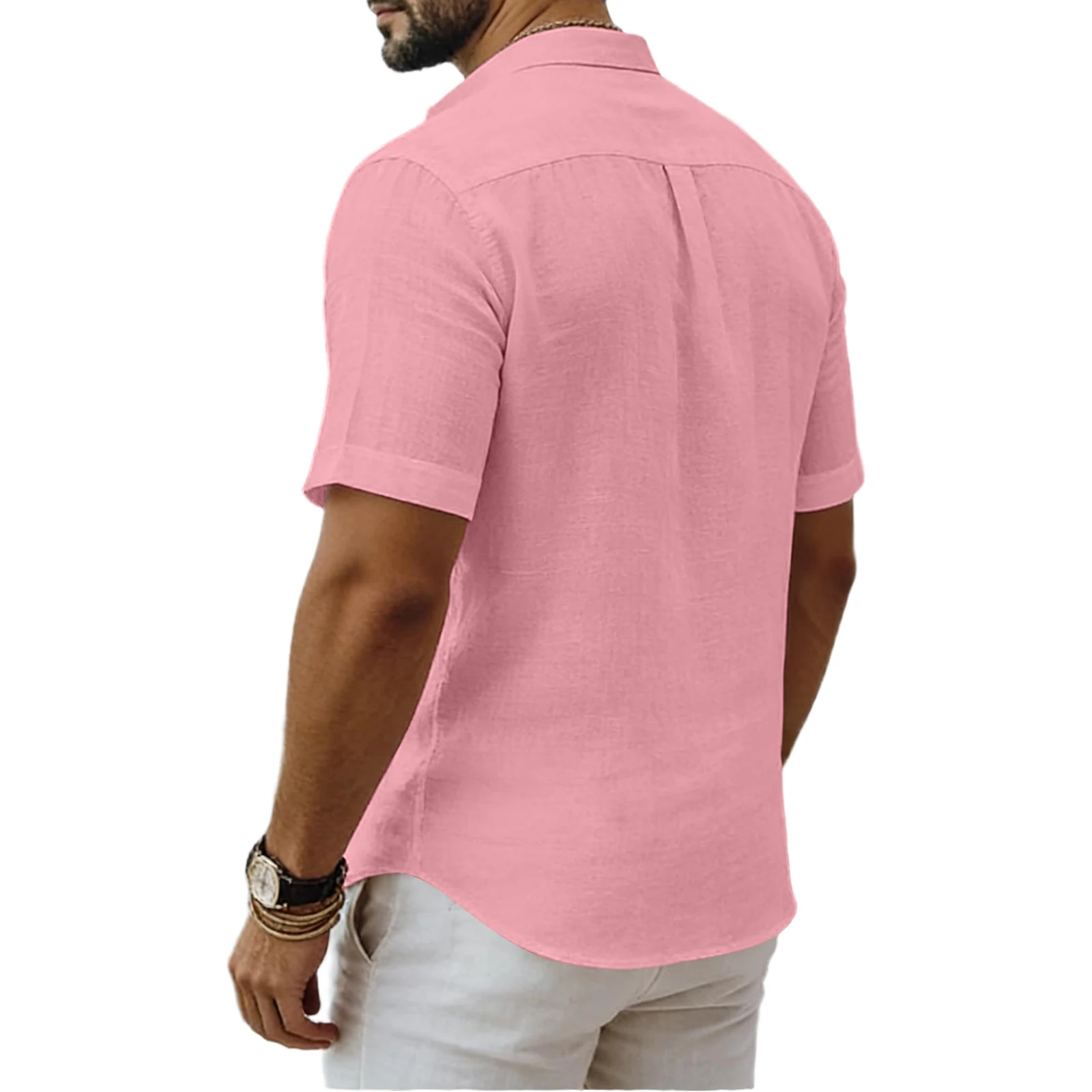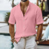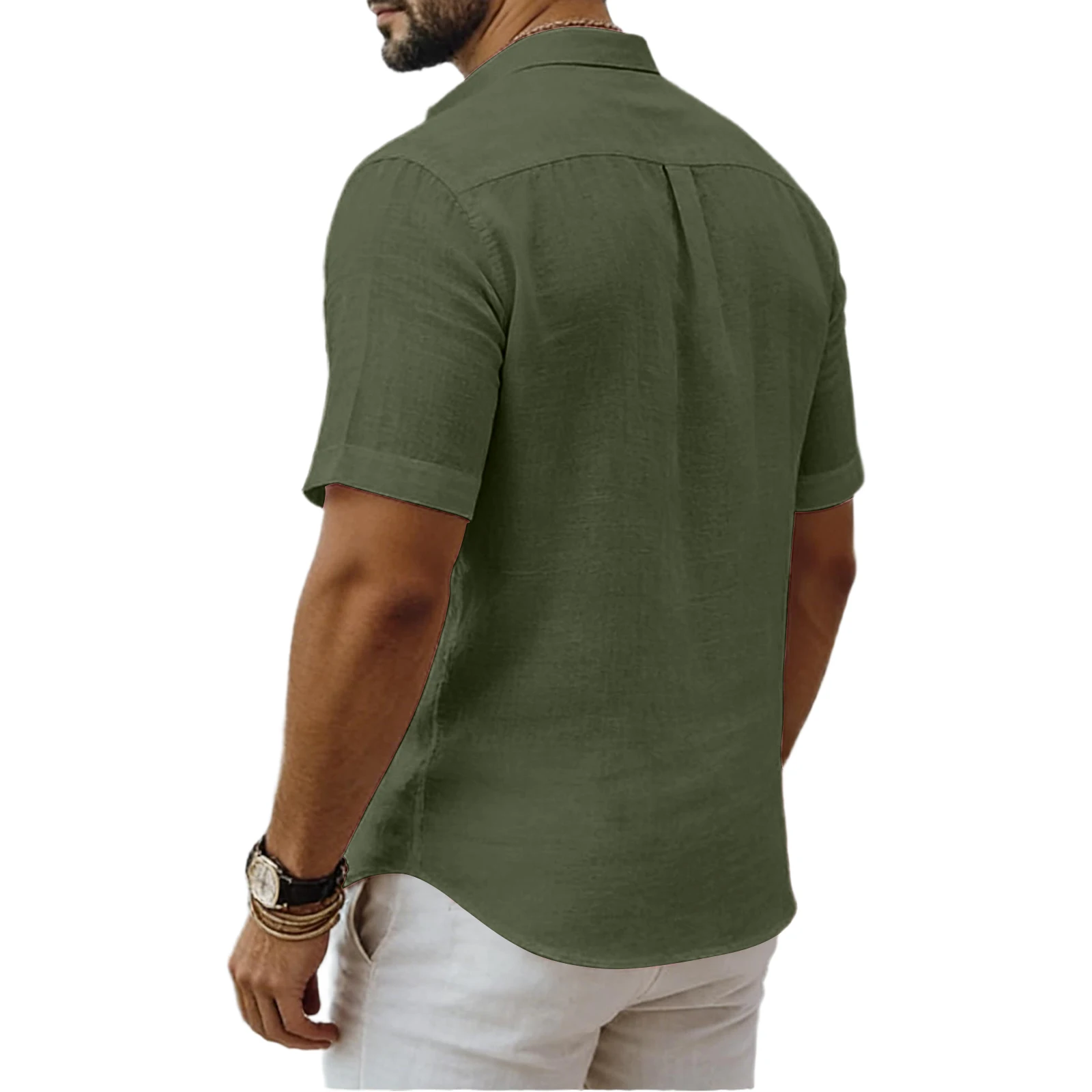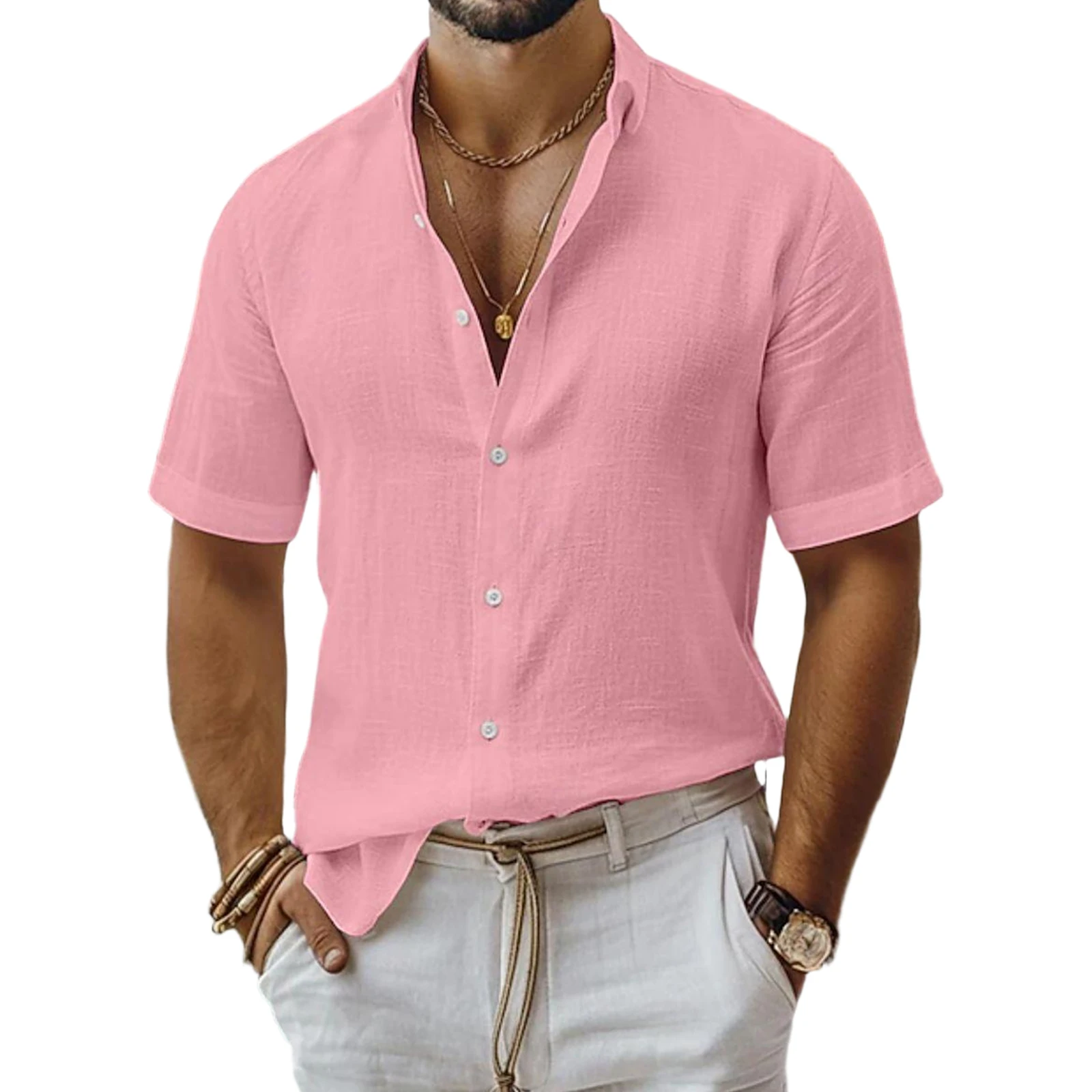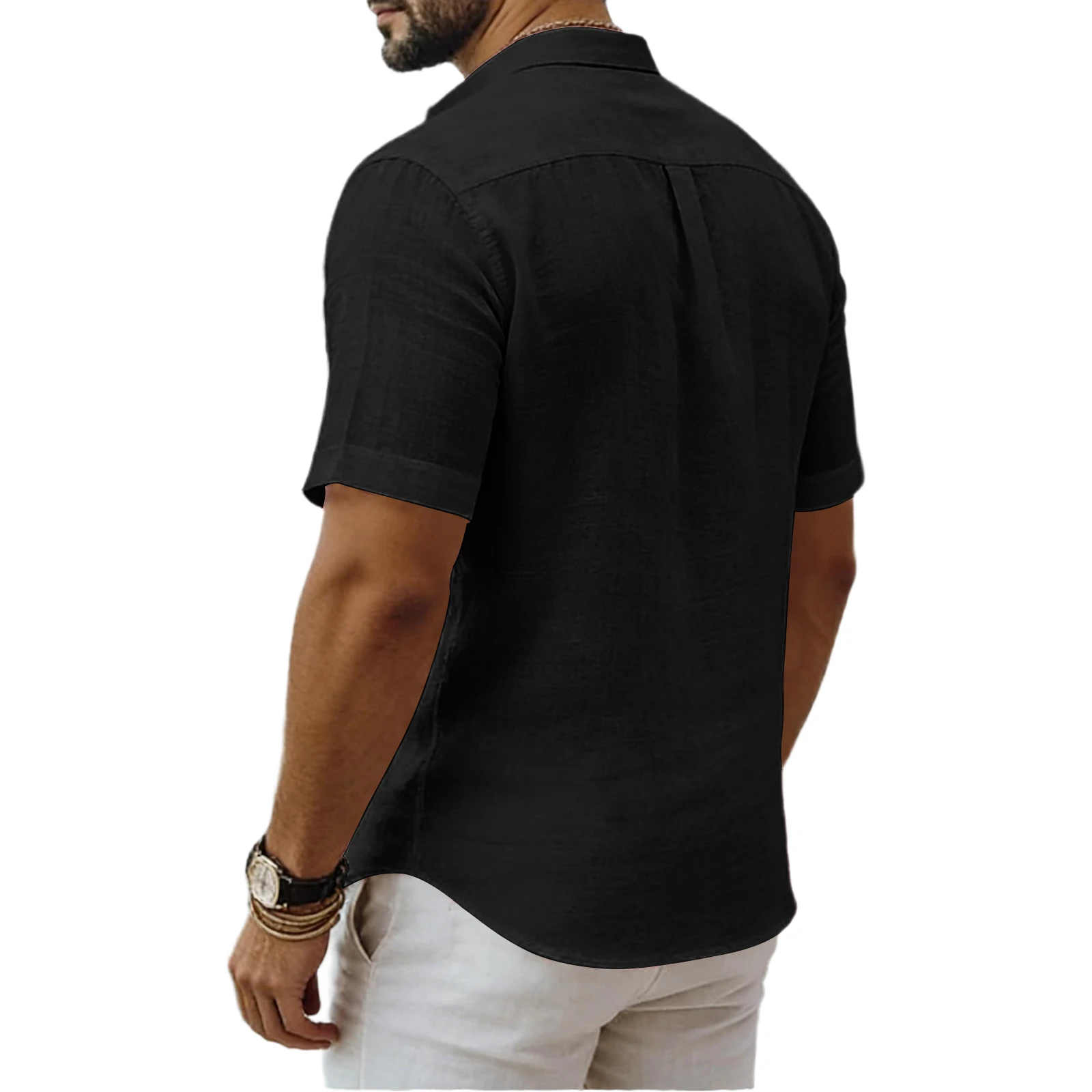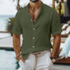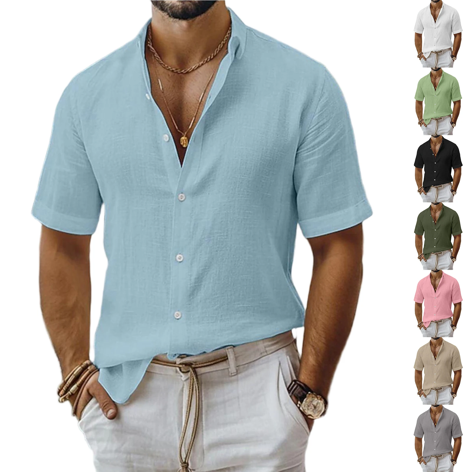 Men’s Linen Cotton Shirt Summer Short Sleeve Lapel Top Business Casual Color Shirt
