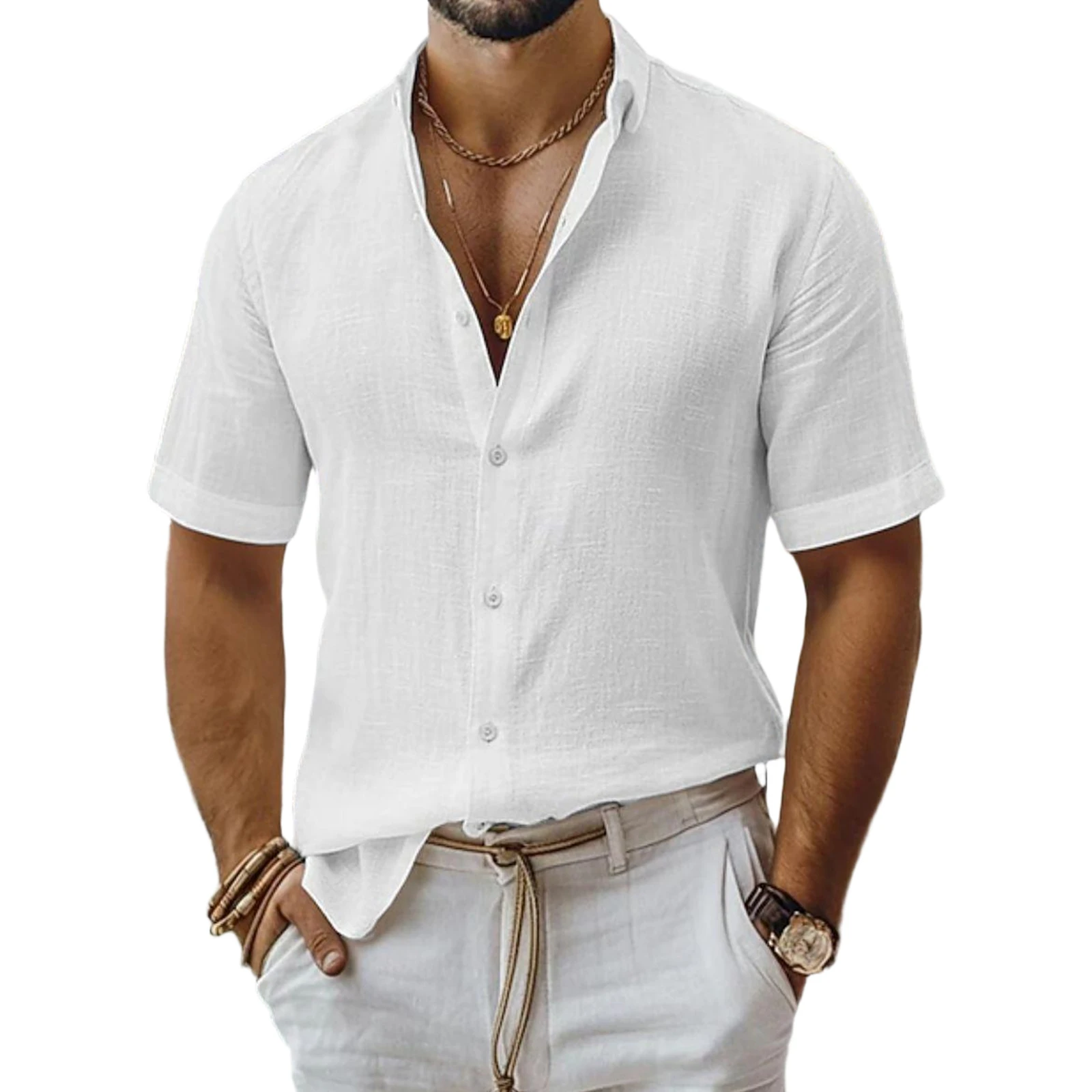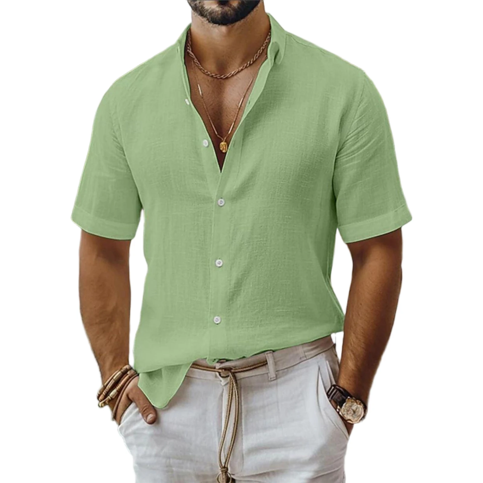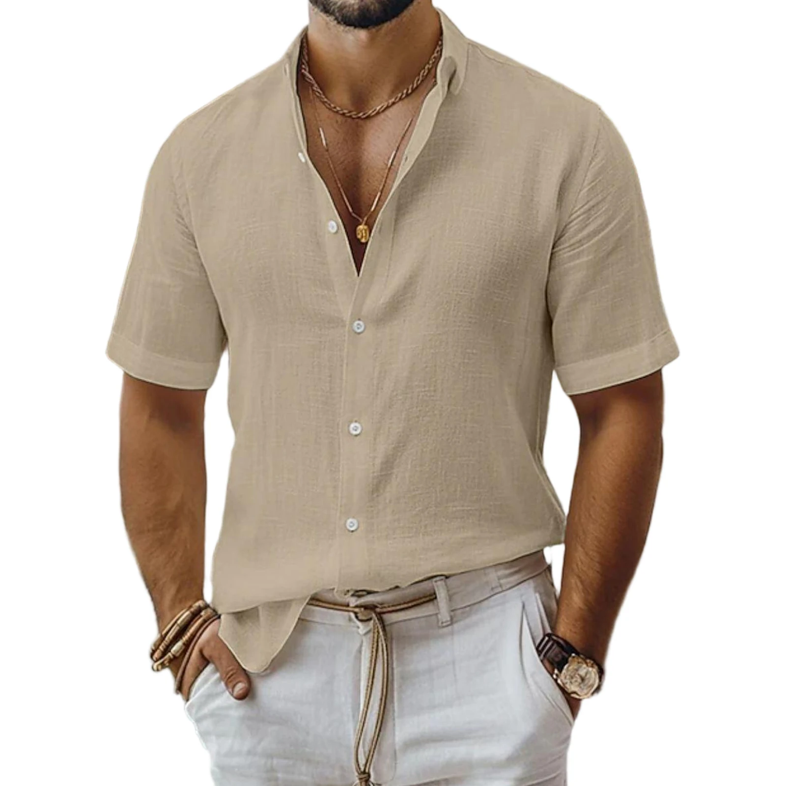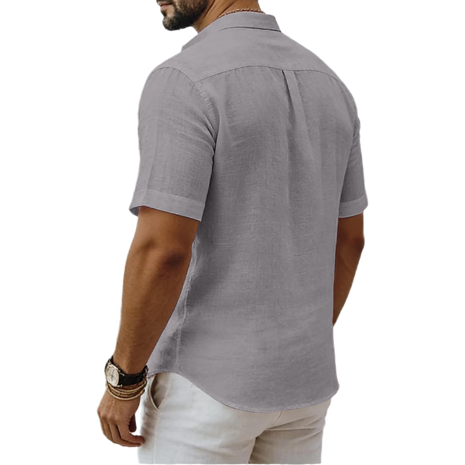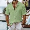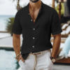 Men’s Linen Cotton Shirt Summer Short Sleeve Lapel Top Business Casual Color Shirt