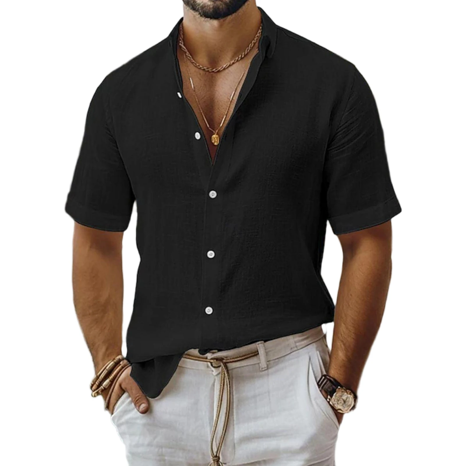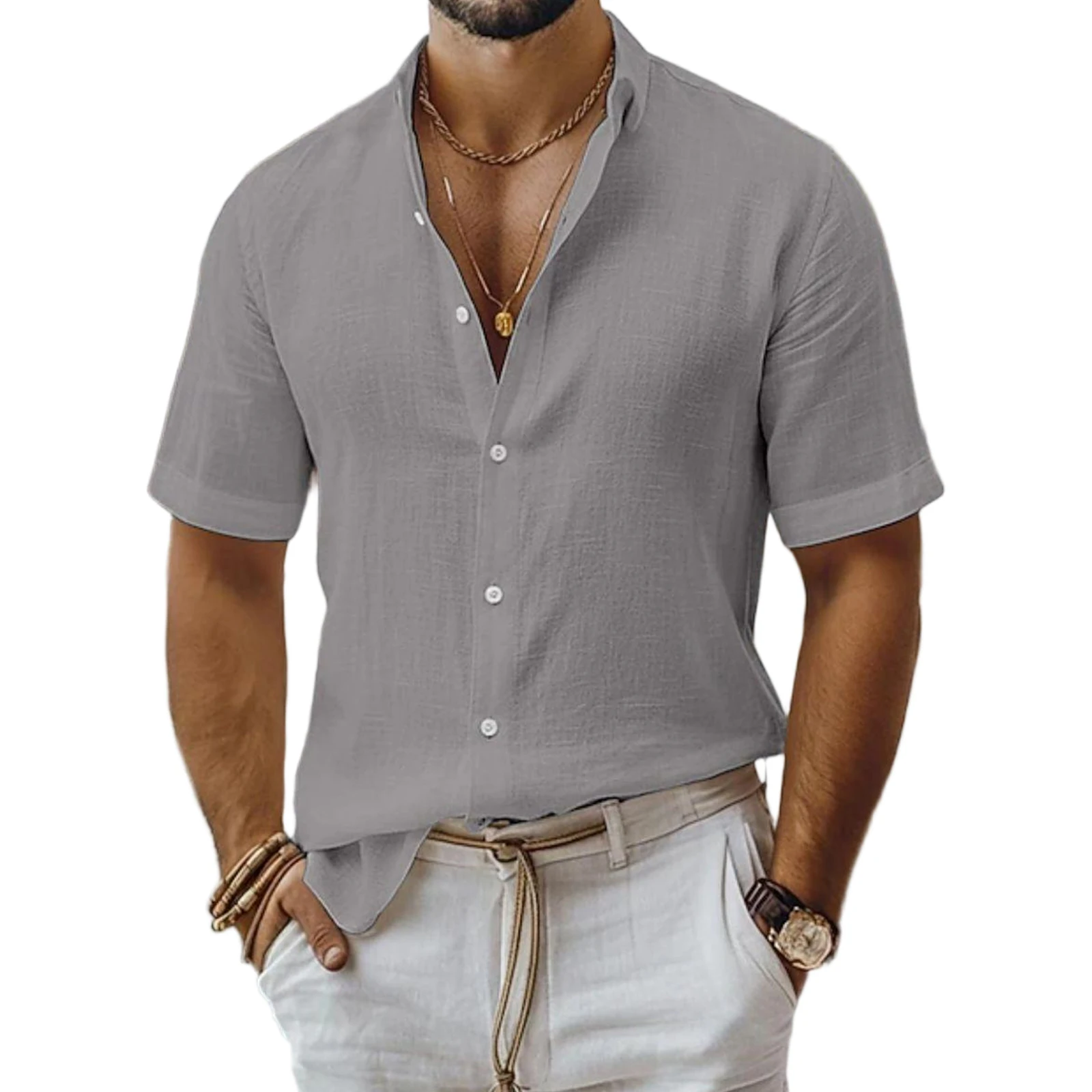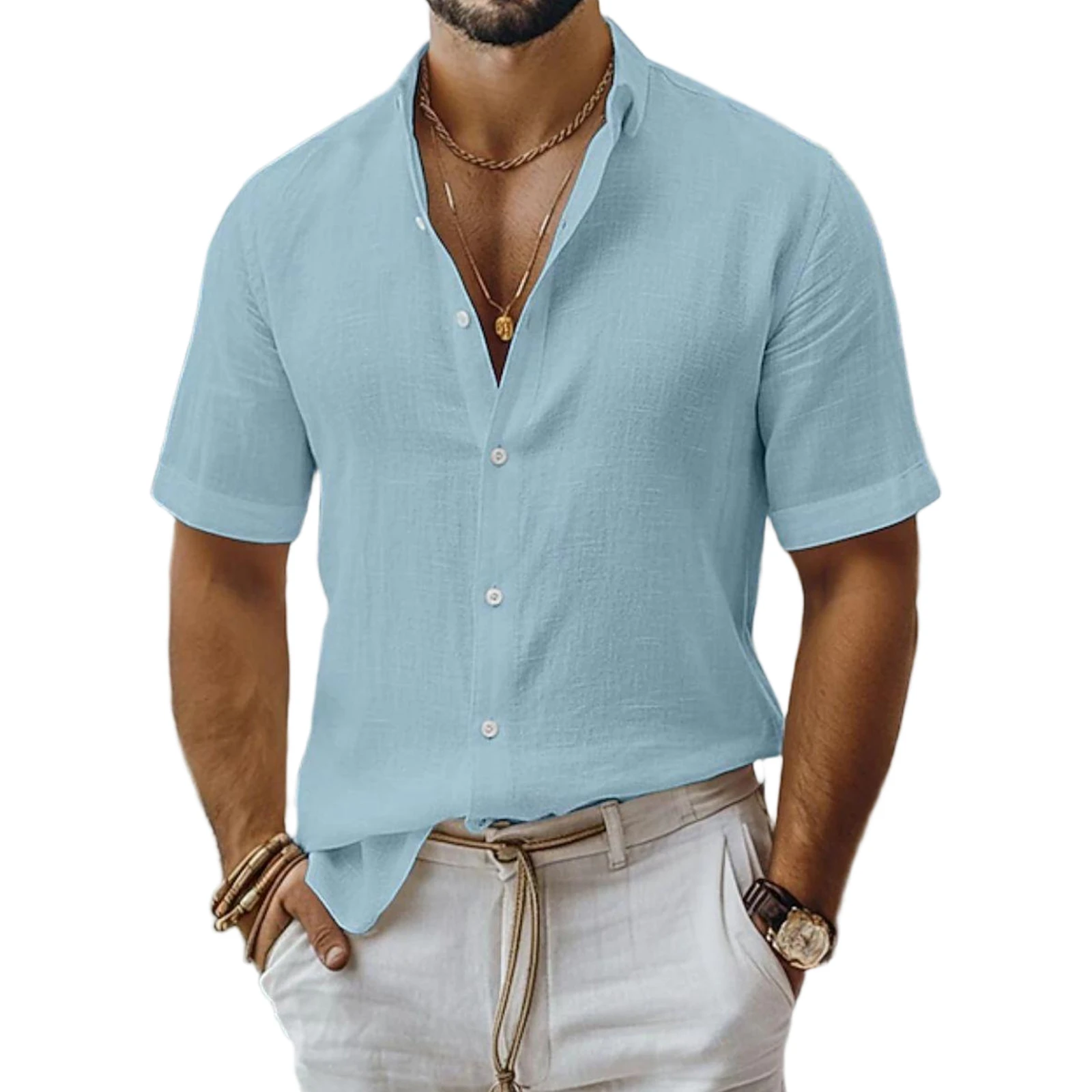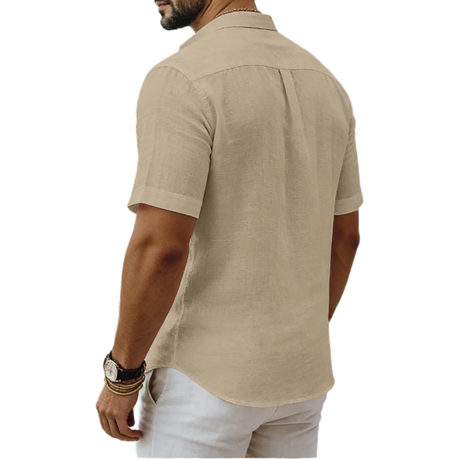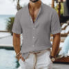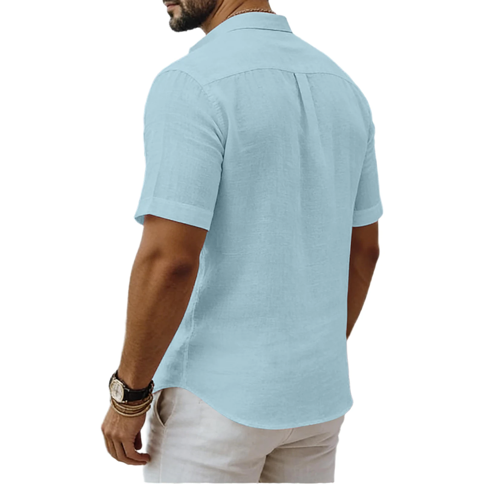 Men’s Linen Cotton Shirt Summer Short Sleeve Lapel Top Business Casual Color Shirt