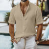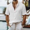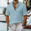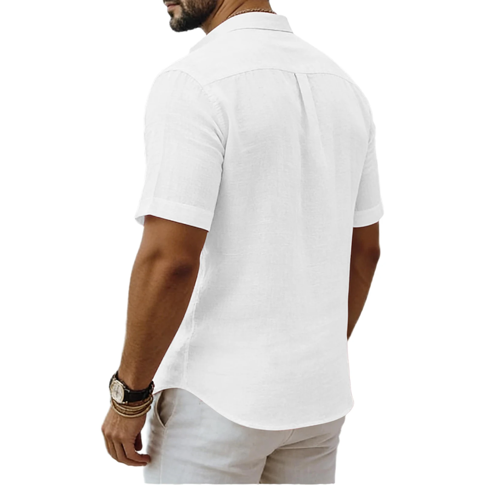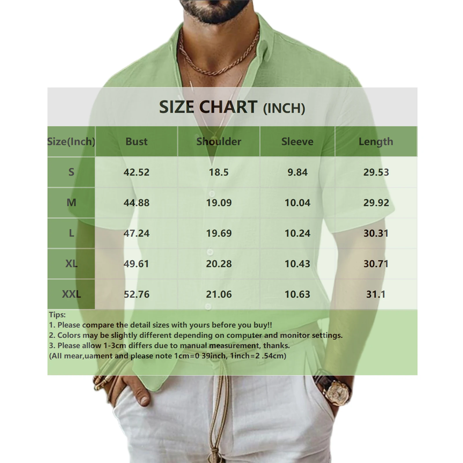 Mens Summer Cotton Linen Short Sleeve Shirt Button Down Casual Breathable Tops for Beach Vacation