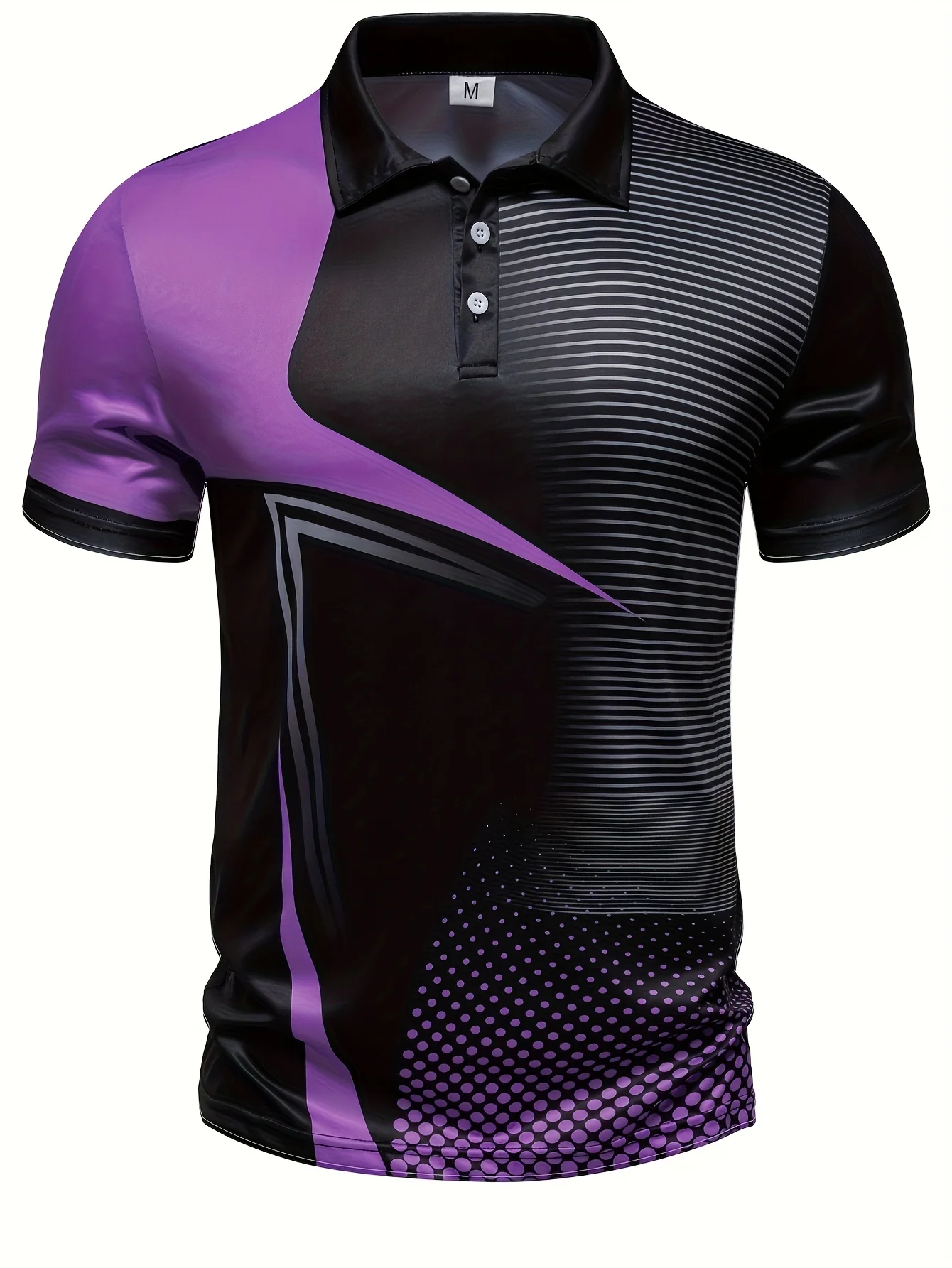 Men’s Summer Slim-fit Casual Shirt with Geometric Patterns, Short Sleeves, Buttoned Collar, Suitable for Golf and Tennis.