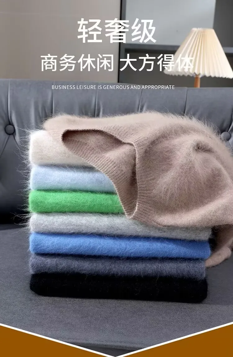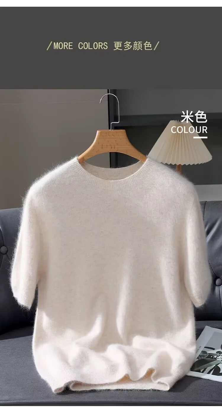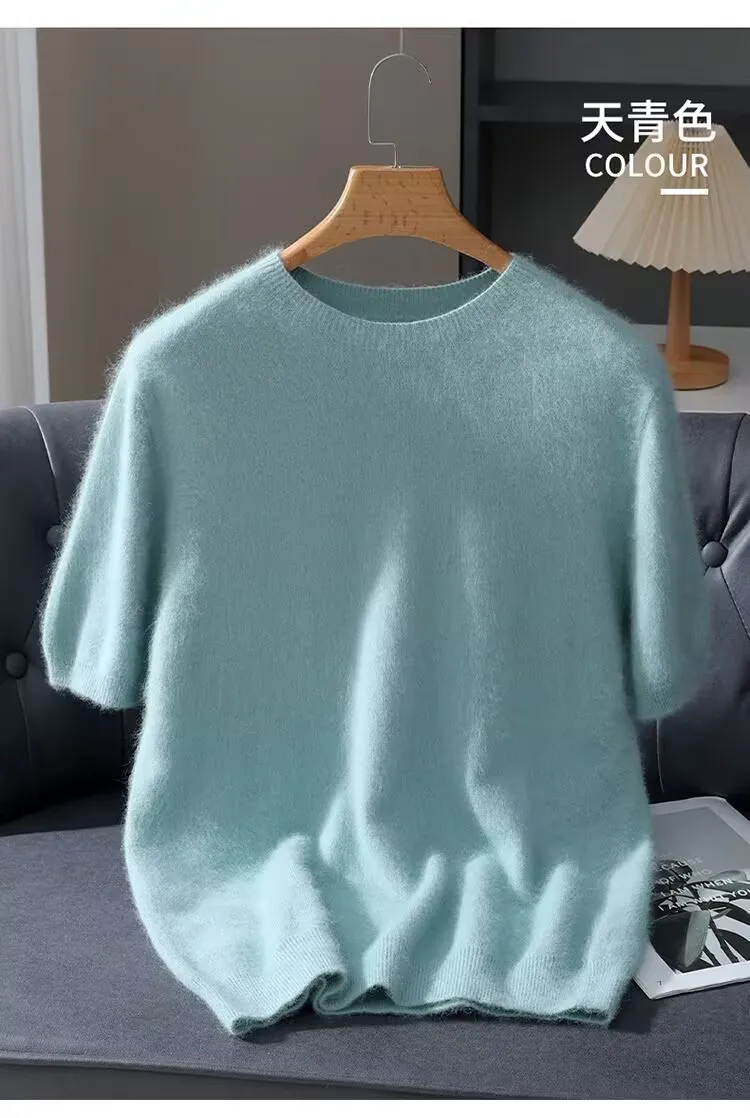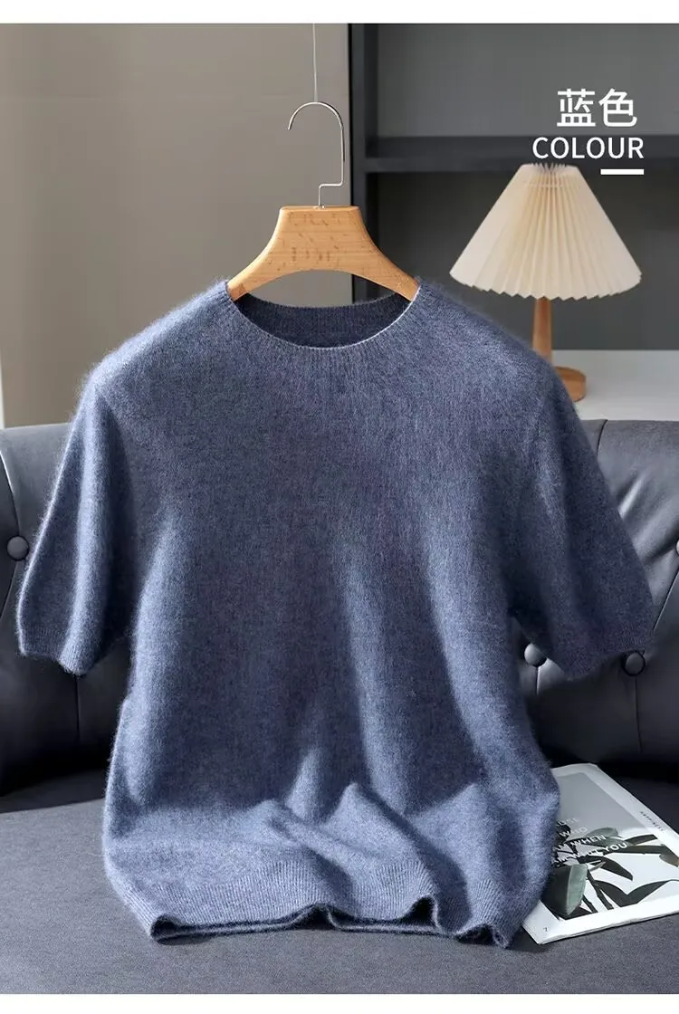 Men’s Sweater Pullover Short Sleeved Summer Mink Knit Sweater Loose Round Neck Solid Color Half Sleeved Simple T-Shirt Casualtop