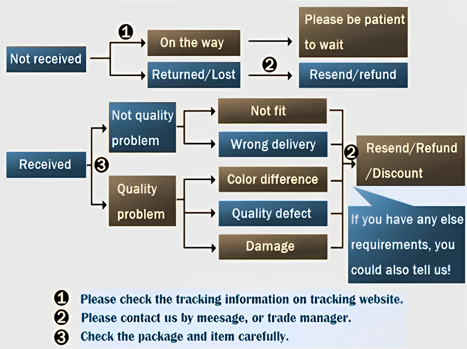 • If you received the wrong item you can request a refund or a reshipment.