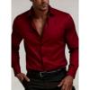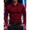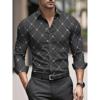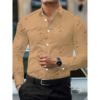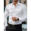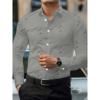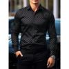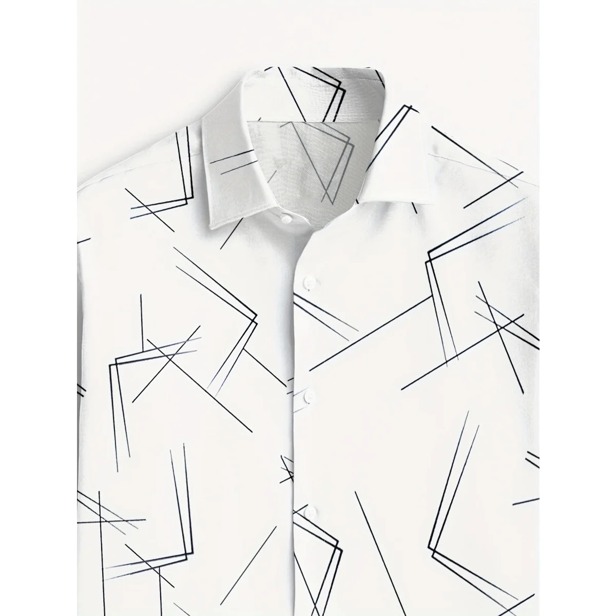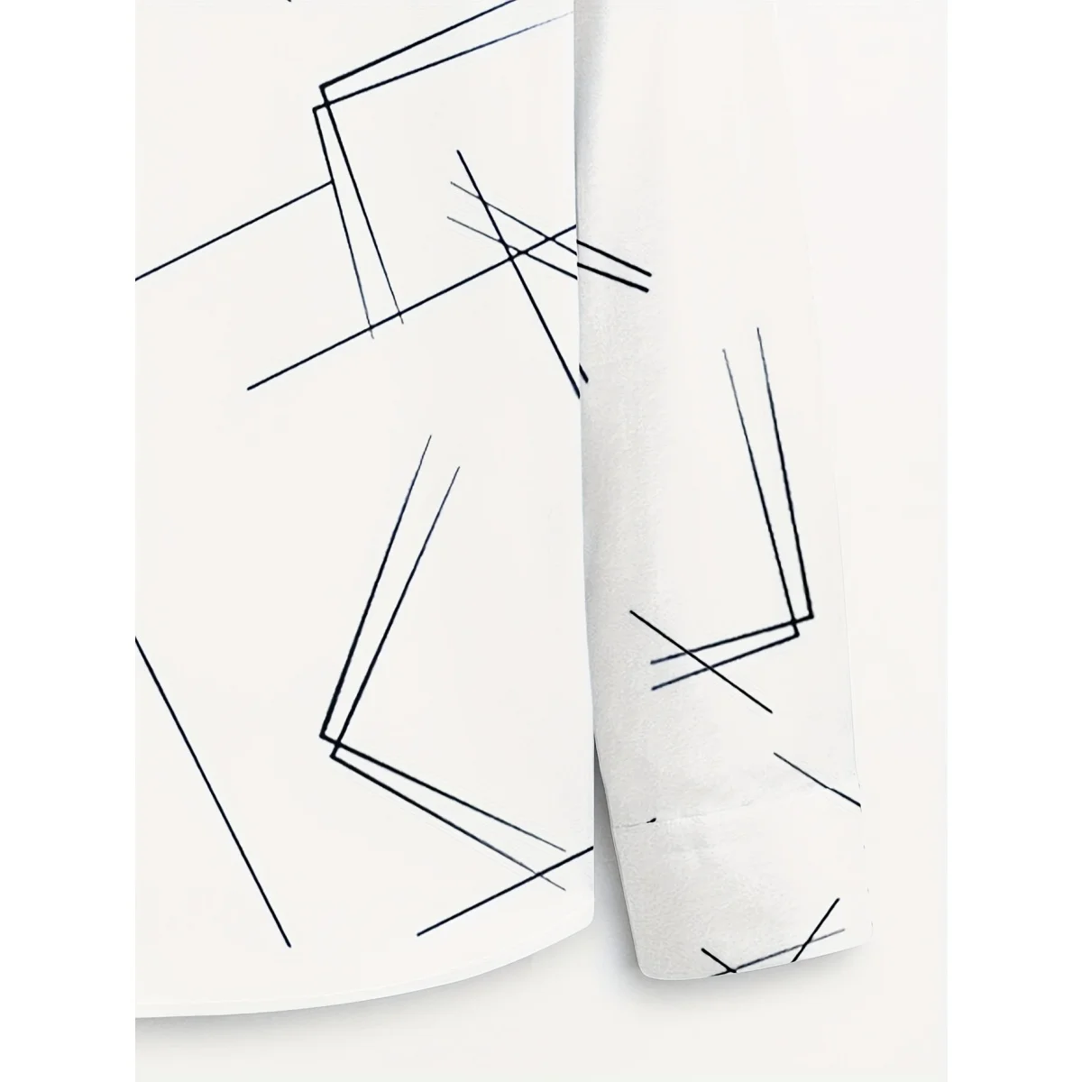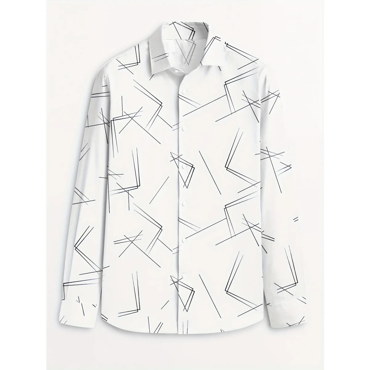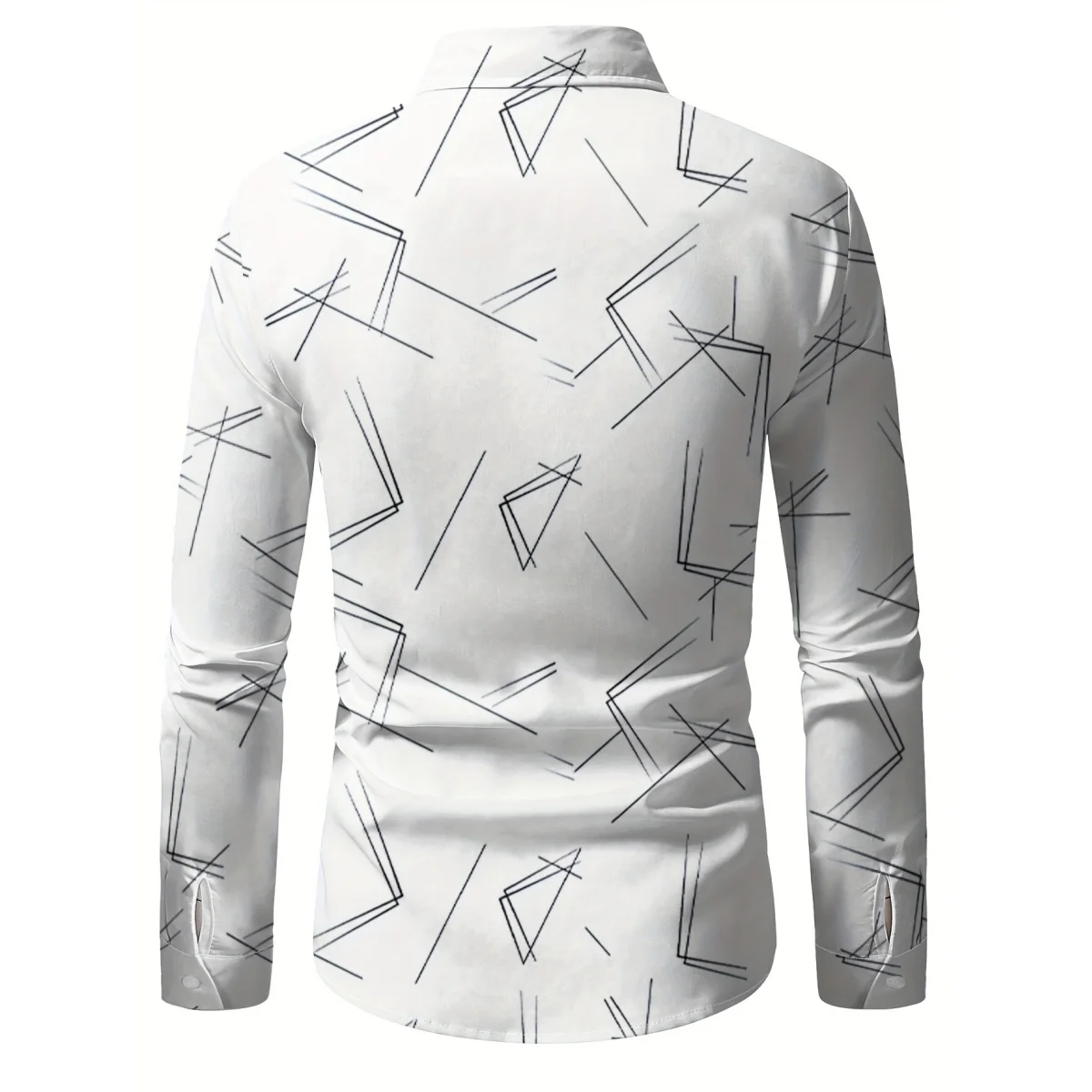 Men’s Trendy Geometric 3D Line Print Long-Sleeved Shirt Men’s Button up Shirt Casual Fashion Male White Shirt Lapel Shirt Tops