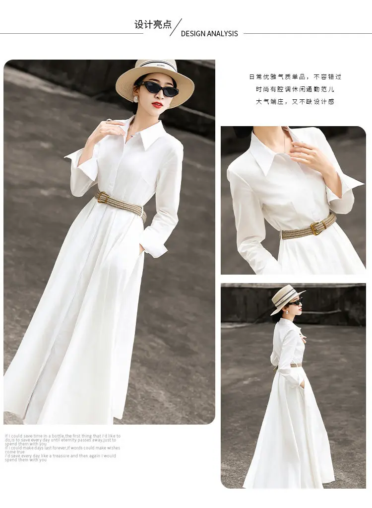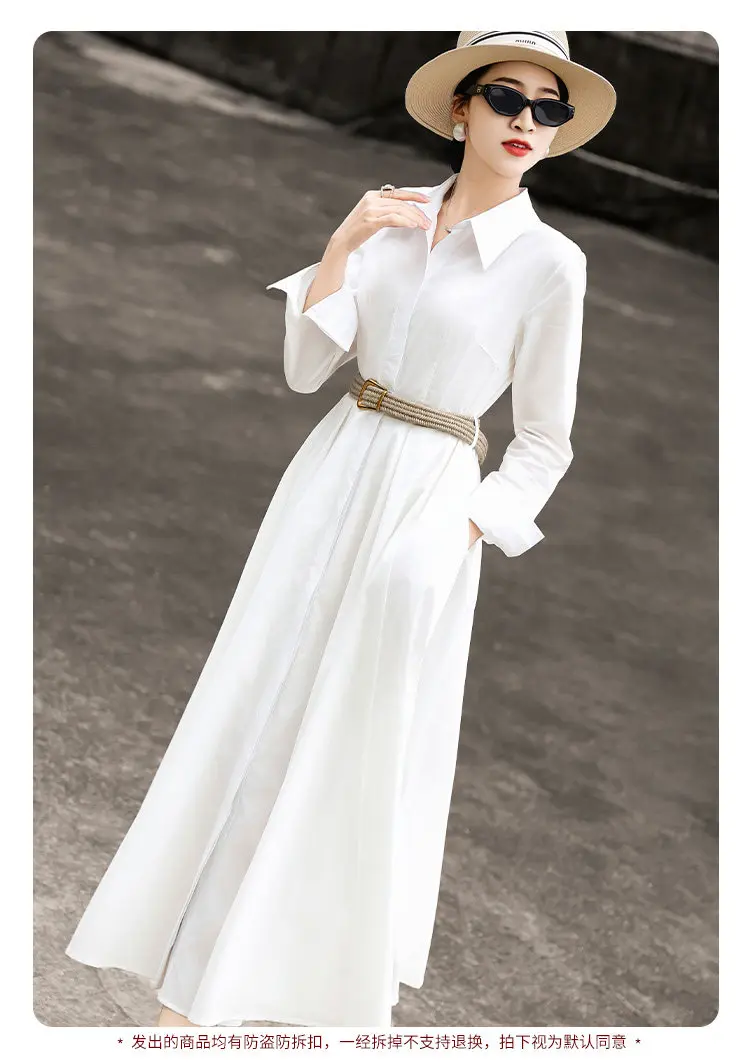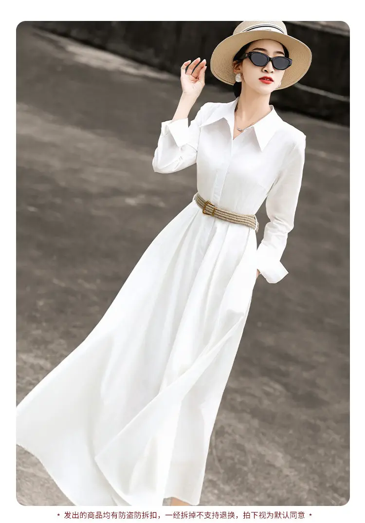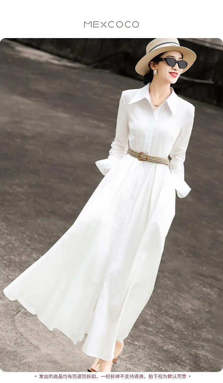 MEXCOCO 2026Spring new style elegant and sophisticated waist-cinching slimming long-sleeve shirt dress