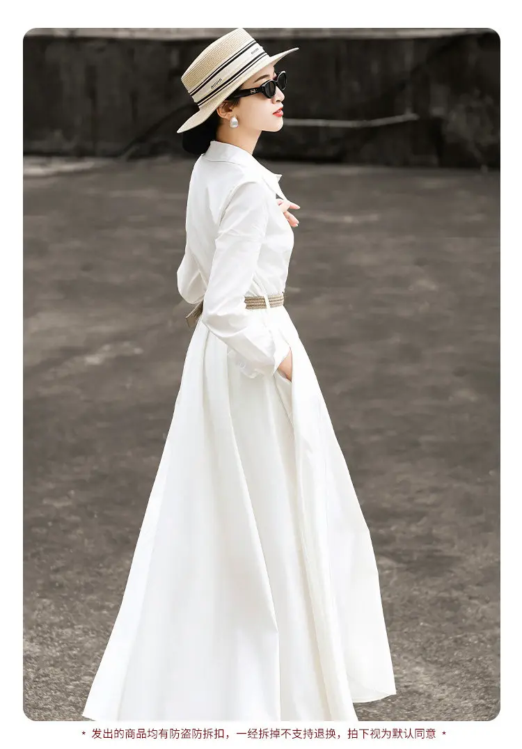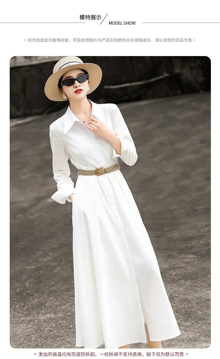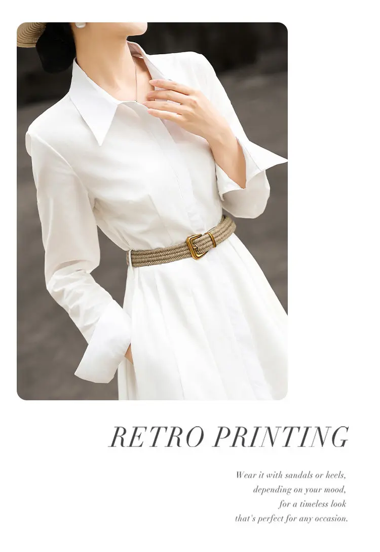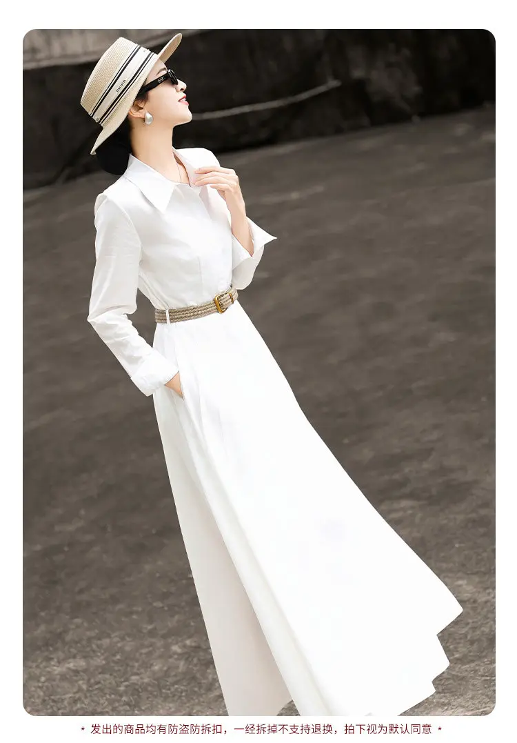MEXCOCO 2026Spring new style elegant and sophisticated waist-cinching slimming long-sleeve shirt dress