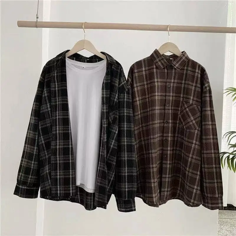 MEXZT Vintage Oversized Plaid Shirts Women Streetwear Long Sleeve Blouses Harajuku Korean Pocket Loose Casual All Match Tops New