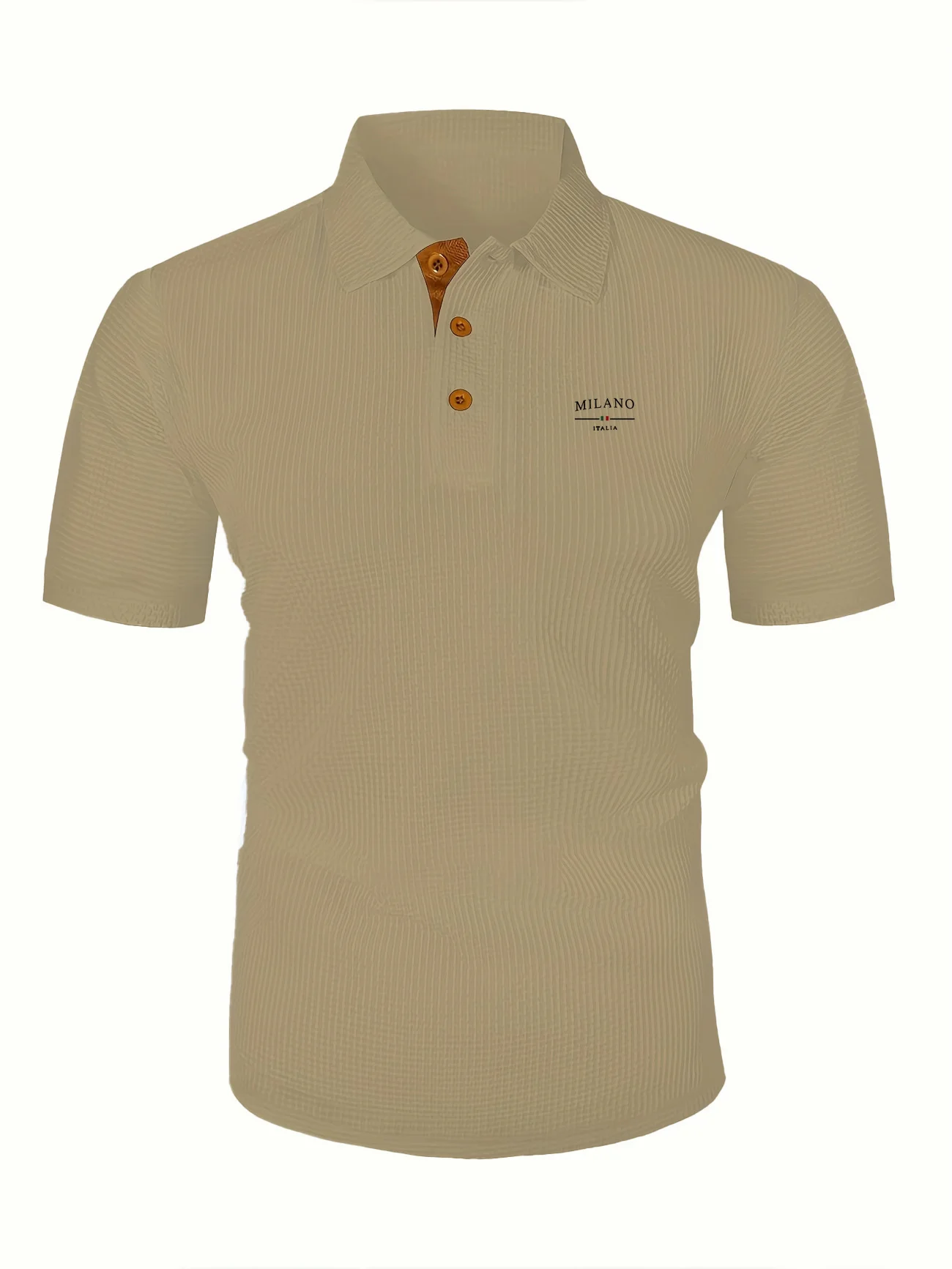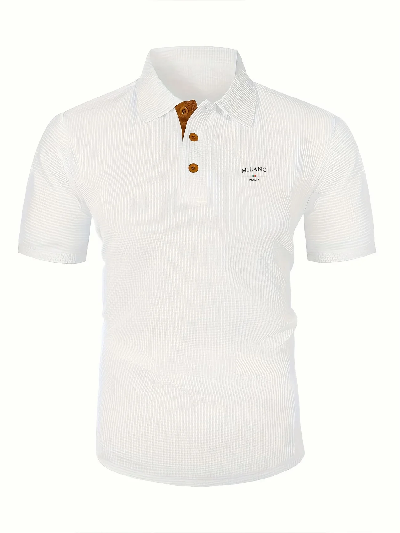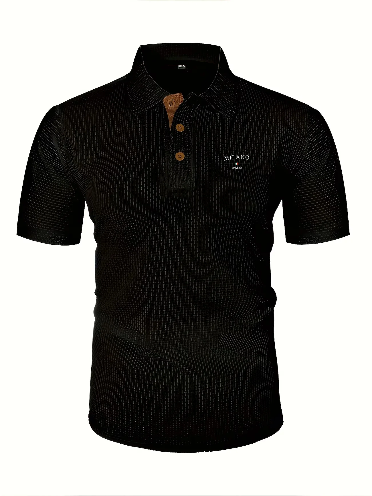 Milano Italia Men’s Waffle Knit Short Sleeve Polo Shirt Casual Fashion Golf T-Shirt with Contrast Buttons