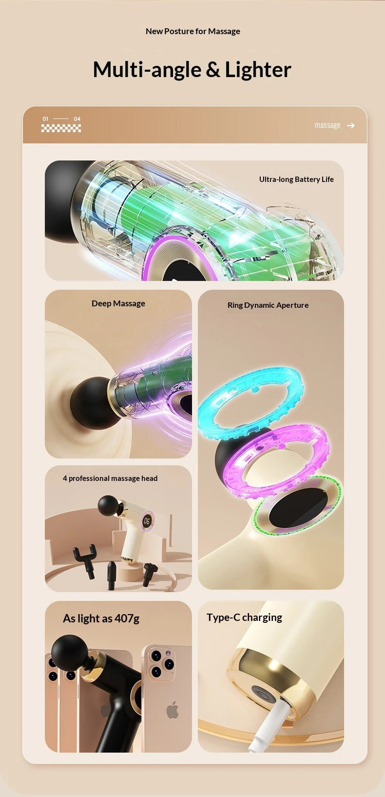 4 Interchangeable Massage Heads: