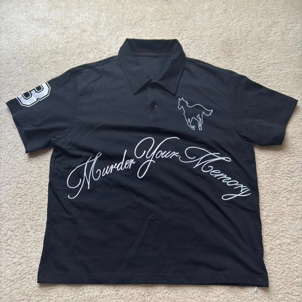 Minimalist and Fashionable Hip Hop Y2K Polo Shirt Print Rock Goth Oversized T-shirt Button-down Collar Shirt Punk Casual Tee