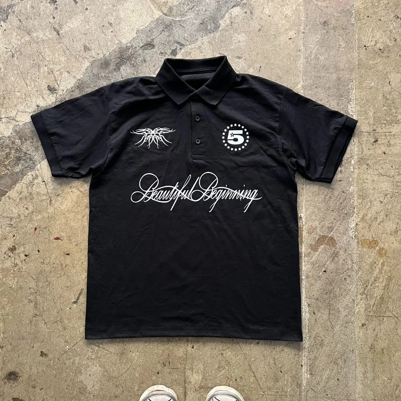Minimalist and Fashionable Hip Hop Y2K Polo Shirt Print Rock Goth Oversized T-shirt Button-down Collar Shirt Punk Casual Tee