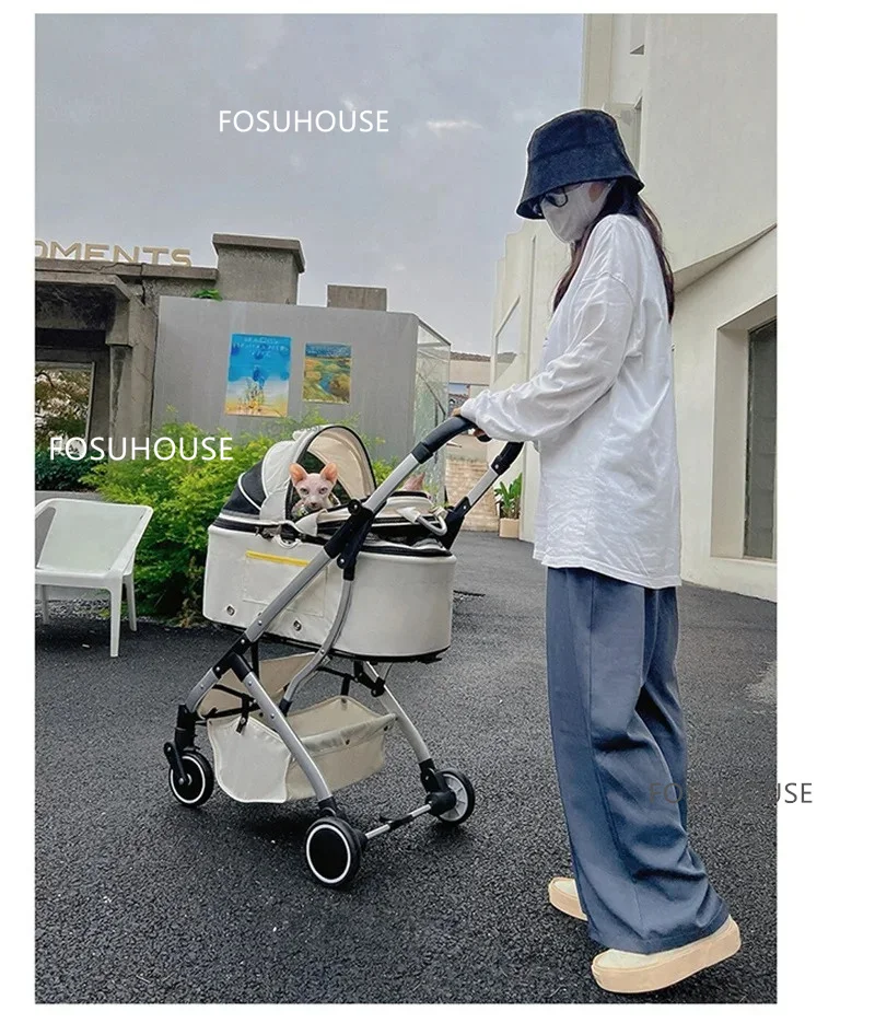 Modern Pet Stroller For Small Dogs And Cats Foldable Dog Trolley Cat Carrier Multifunctional Shock Absorbing Pet Strollers