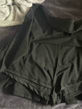 La pedí talla L por que pensé q llegaría muy chica pero me quedo un poco grande y peso 70kg, es demasiado linda y tiene un short abajo, aún no la pruebo pero si es corta :3