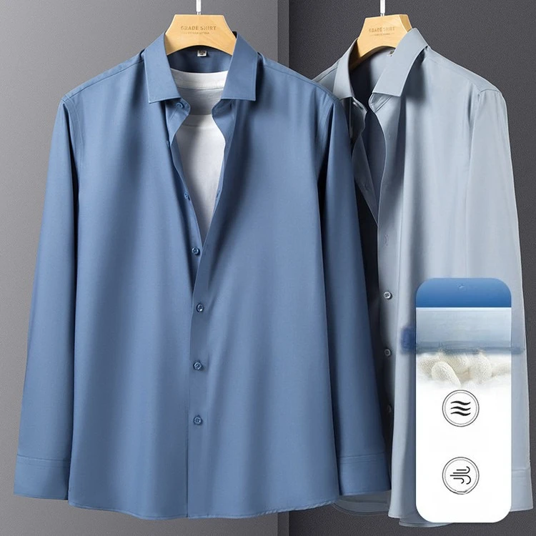 Mulberry Silk Long-Sleeve Shirt: Lightweight, Smooth & Breathable, Multi-Color Options Men’s High-quality Formal Shirt