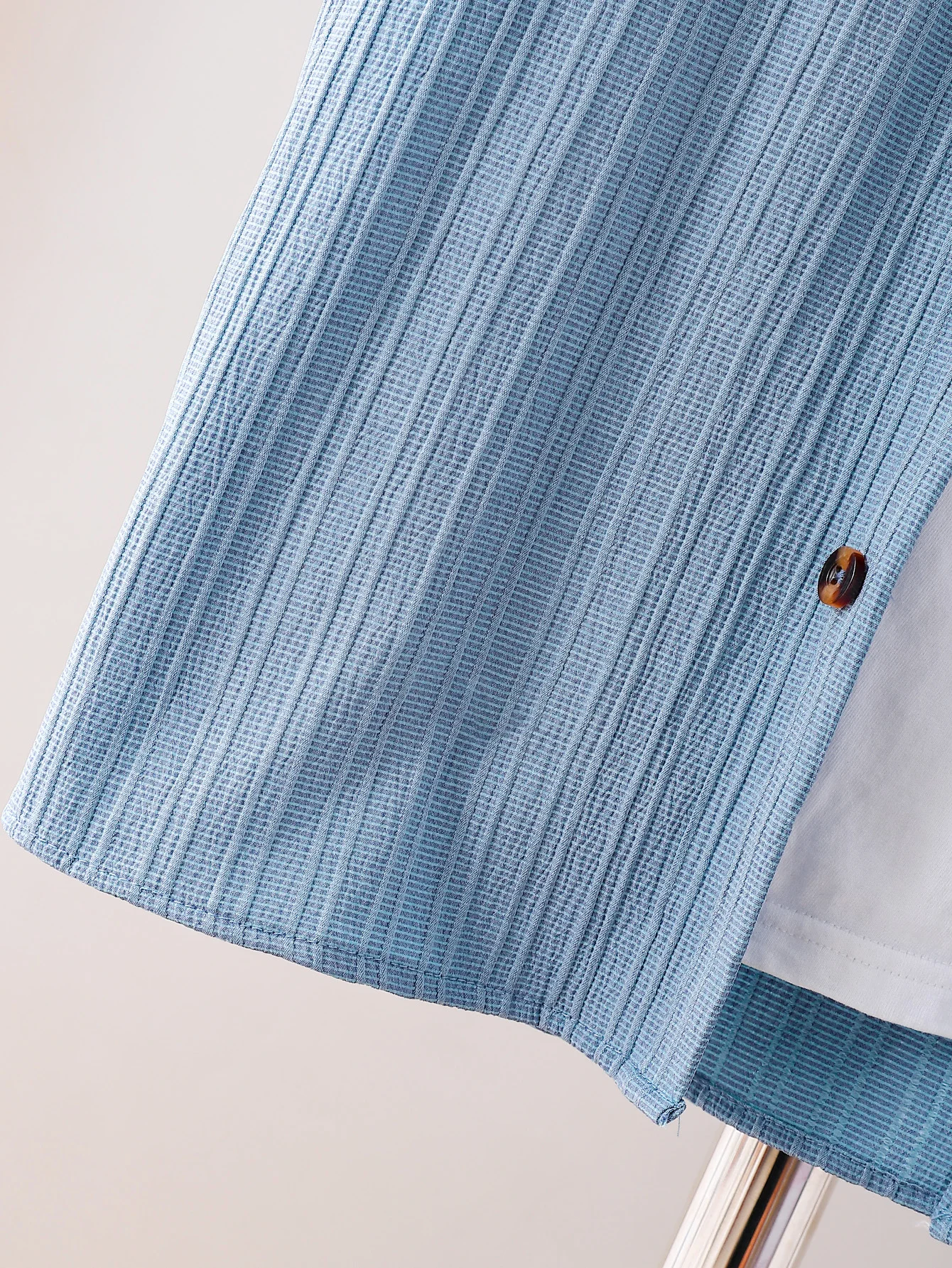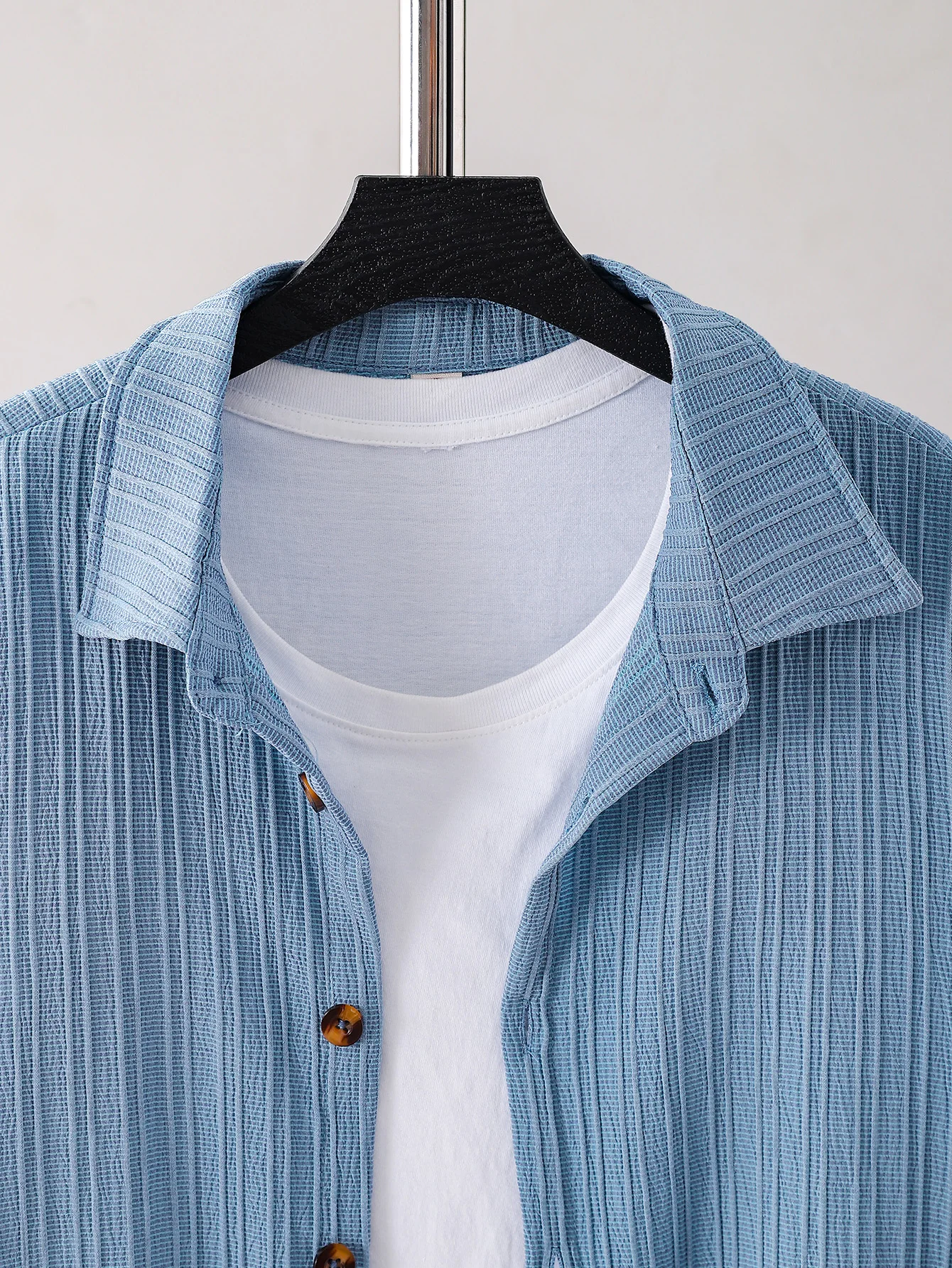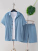 New adult summer open chest button short sleeved+loose shorts casual outfit