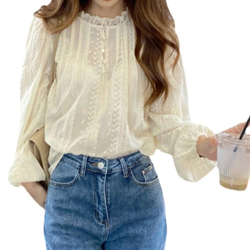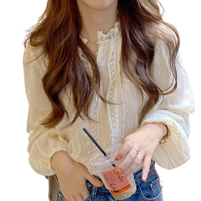 New Chic Spring Autumn Lace Women Fashion Blouse Long Sleeve Casual Elegant Office Loose Shirt Collar Elegant Top Clothes