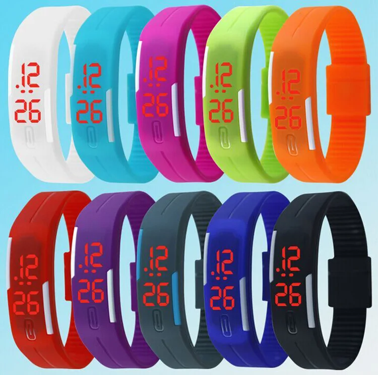 New Digital LED Watches Candy Color Silicone Rubber Touch Screen Digital Watches Women Men Children Bracelet Sports Wrist Watch