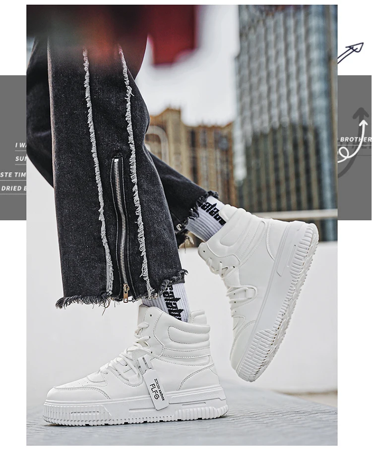 New Fashion Casual Sneakers High Top Skateboard Shoes Student Boots Men and Women Trend Wear Resistant Two-color Couples