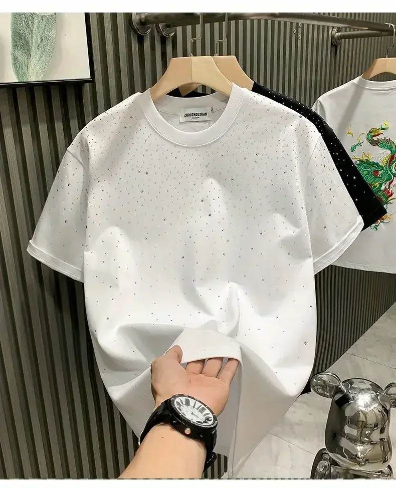 New Luxury Men’s T-shirt Hot Diamond Printed Half Sleeve Fashion Round Neck Casual Summer High-end Men Tops T Shirts