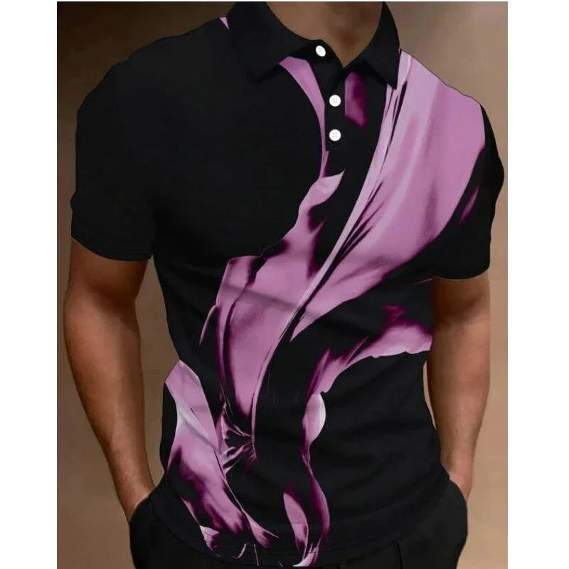 New Men’s 3d Print Coloful Line Polo Shirt Casual Fashion Men’s Short Sleeve Lapel Shirts Plus Size Street Summer Polyester Tops