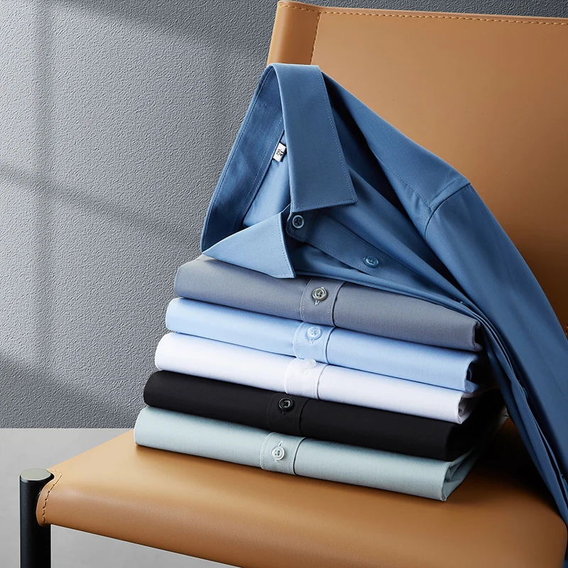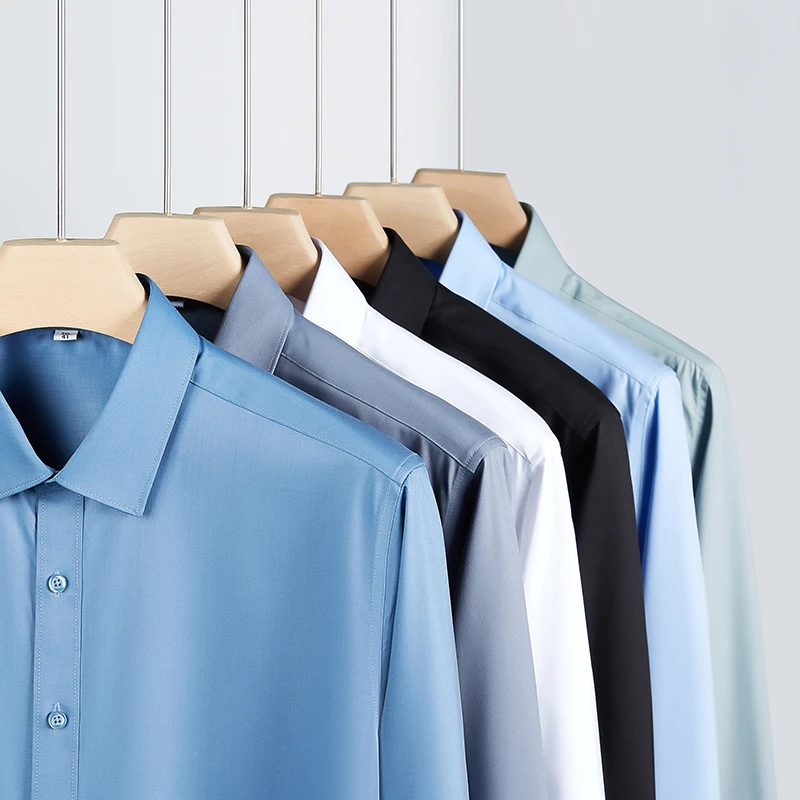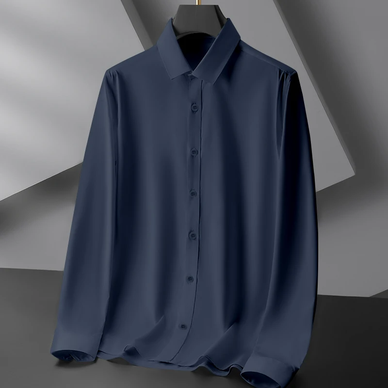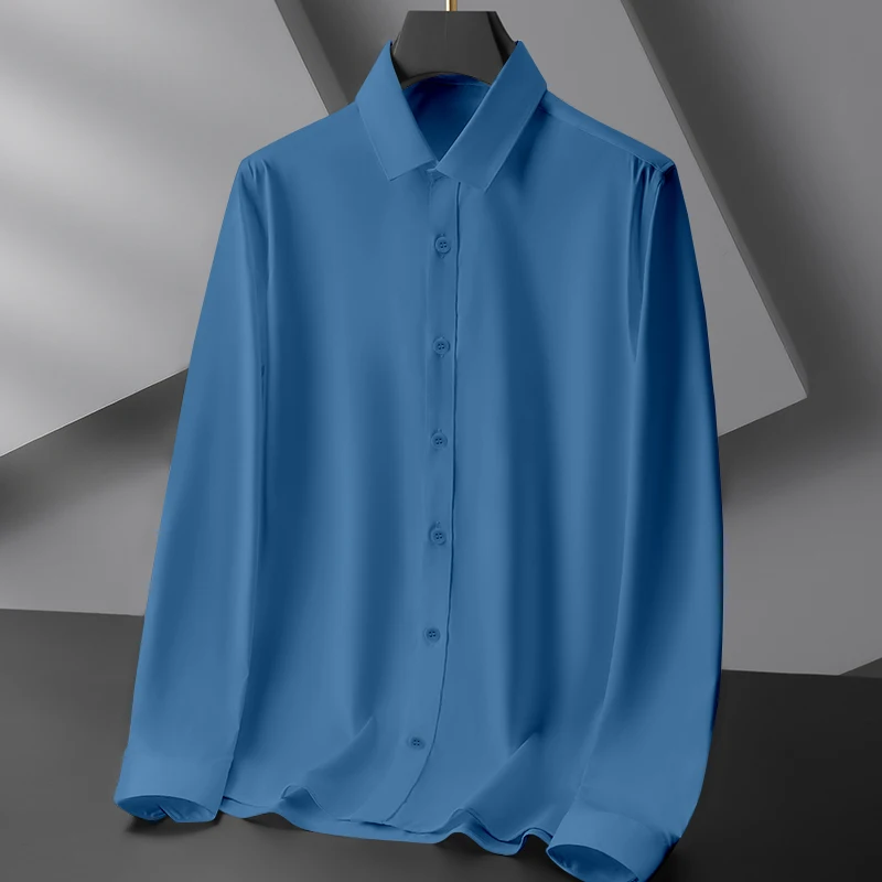 New Men’s Business Casual Long Sleeved Solid Color Shirt Wrinkle Resistant Wrinkle Free Comfortable All Season Versatile Top