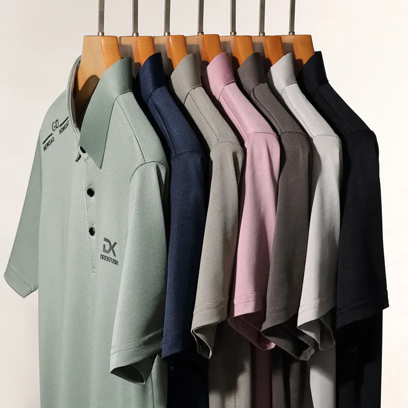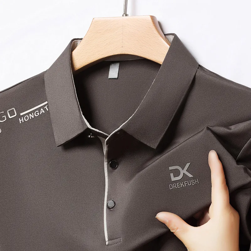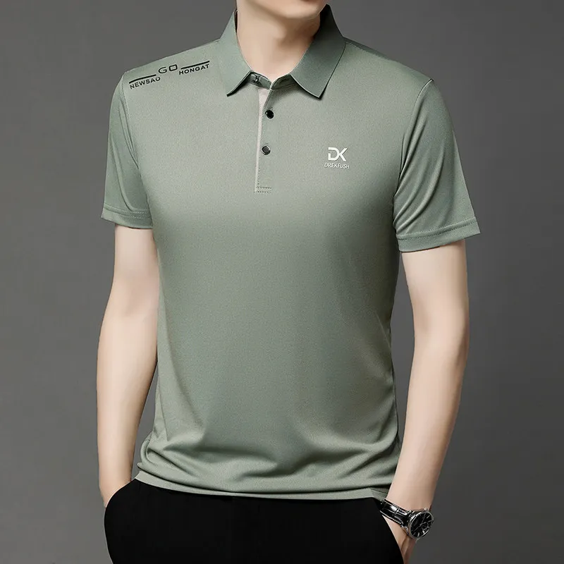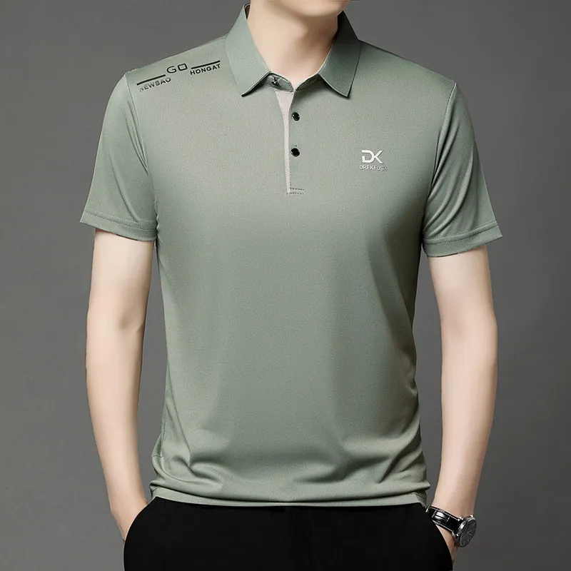 New Men’s Business Casual Short Sleeved Shirt with Badge Solid Color Polo Shirt Fashionable Breathable Comfortable Versatile Top