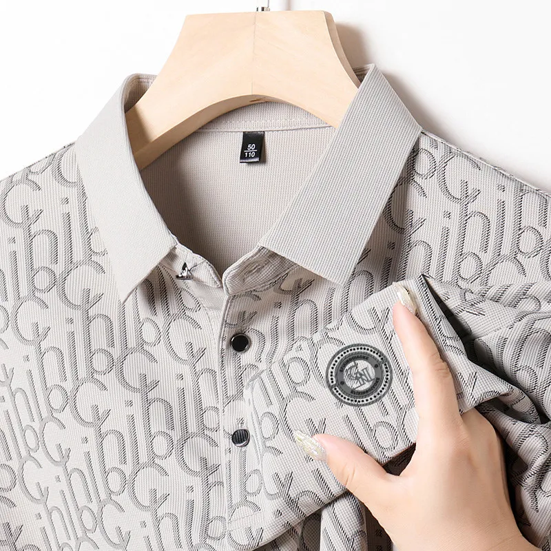 New Men’s Business Casual Short Sleeved Shirt with Badge Solid Color Polo Shirt Fashionable Breathable Comfortable Versatile Top