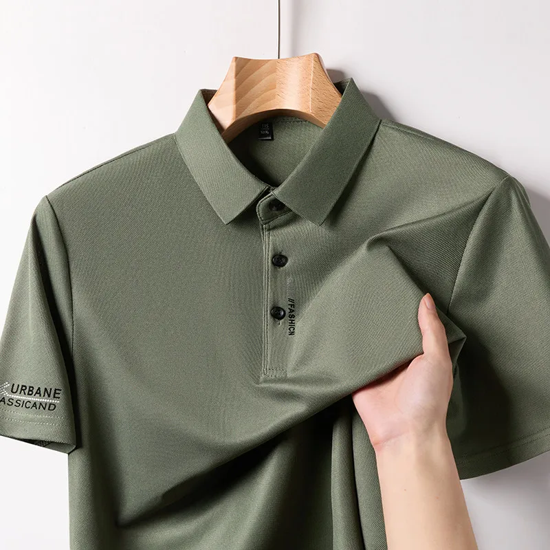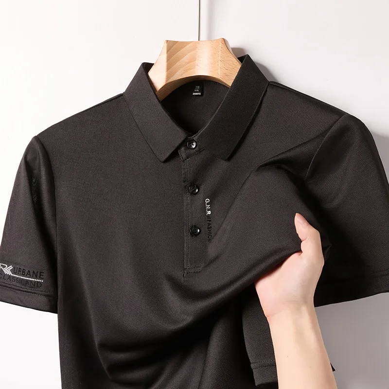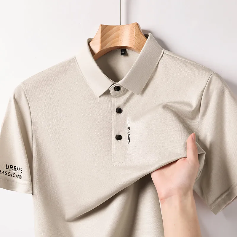 New Men’s Business Casual Short Sleeved Shirt with Badge Solid Color Polo Shirt Fashionable Breathable Comfortable Versatile Top