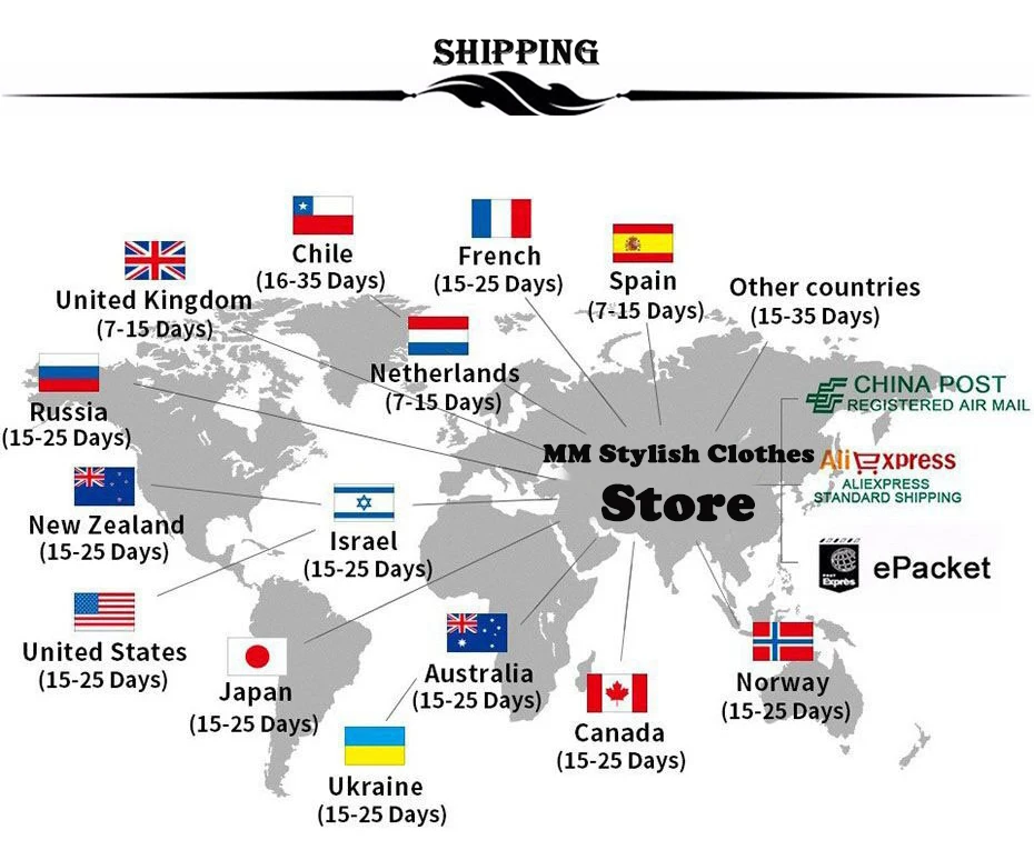 3. The shipping time during Holiday Season (Christmas, Chinese New Year etc.) could be longer than usual time. Please add another 5-10 days as a delay.