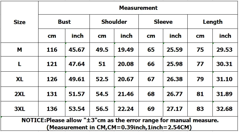 {"sizeInfoList":[{"length":{"cm":"75","inch":"29.53"},"size":"M","vid":-36},{"length":{"cm":"77","inch":"30.31"},"size":"L","vid":-37},{"length":{"cm":"79","inch":"31.10"},"size":"XL","vid":-38},{"length":{"cm":"81","inch":"31.89"},"size":"2XL","vid":-39}