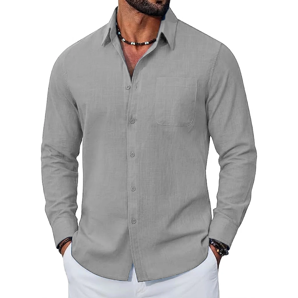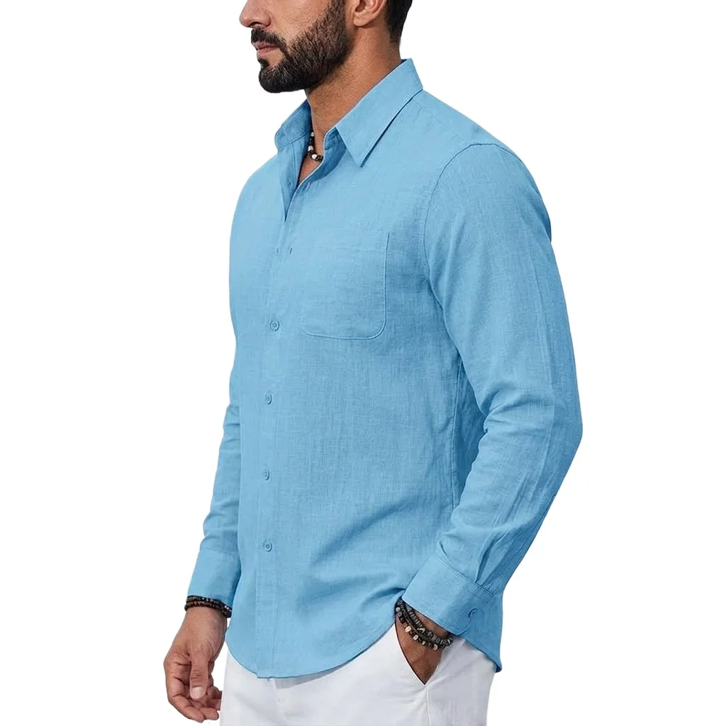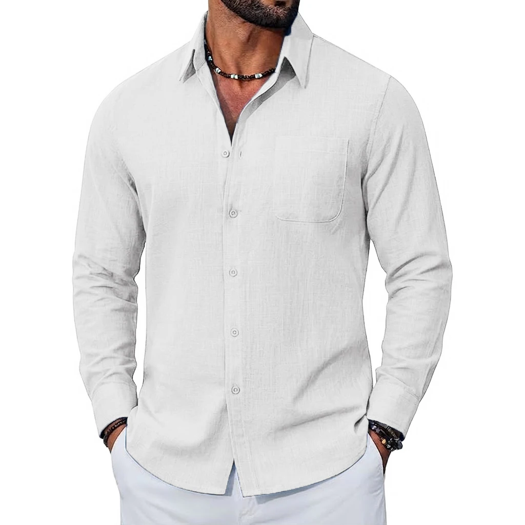 New Men’s Long Sleeve Linen Shirts Luxury Breathable Cotton TShirts Elegant Men’s Shirts Summer Hawaiian Tshirt Lapel Button Tee