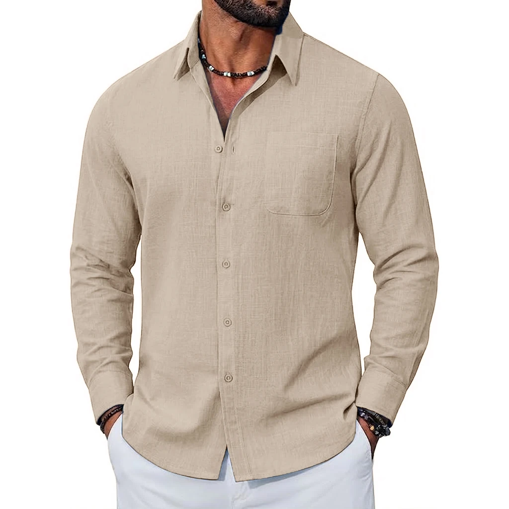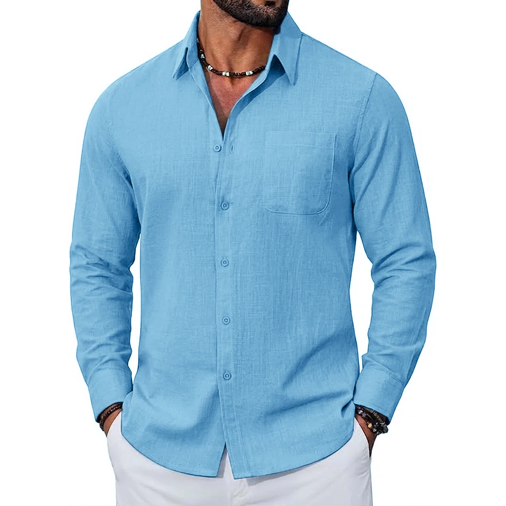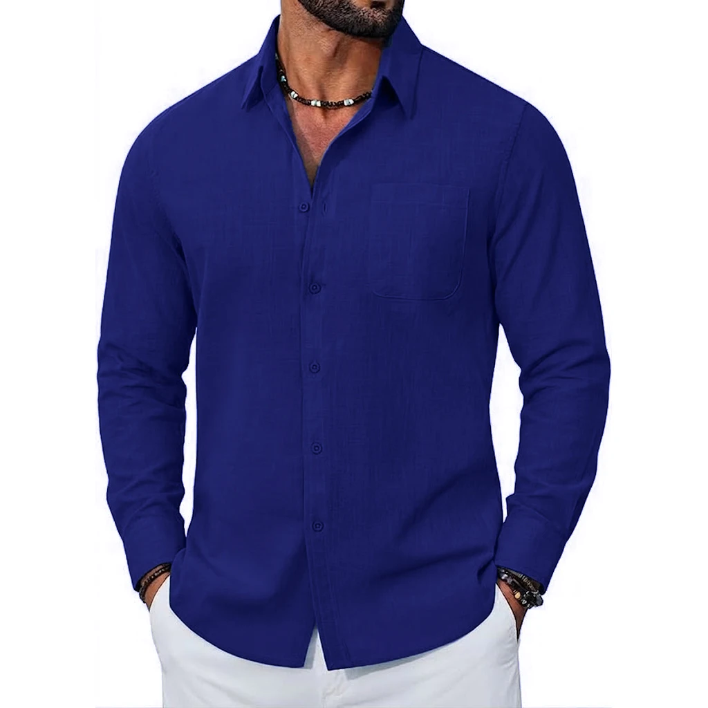 New Men’s Long Sleeve Linen Shirts Luxury Breathable Cotton TShirts Elegant Men’s Shirts Summer Hawaiian Tshirt Lapel Button Tee