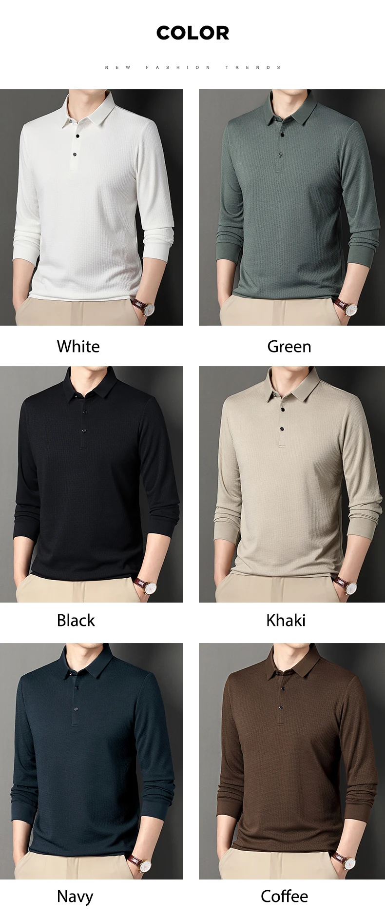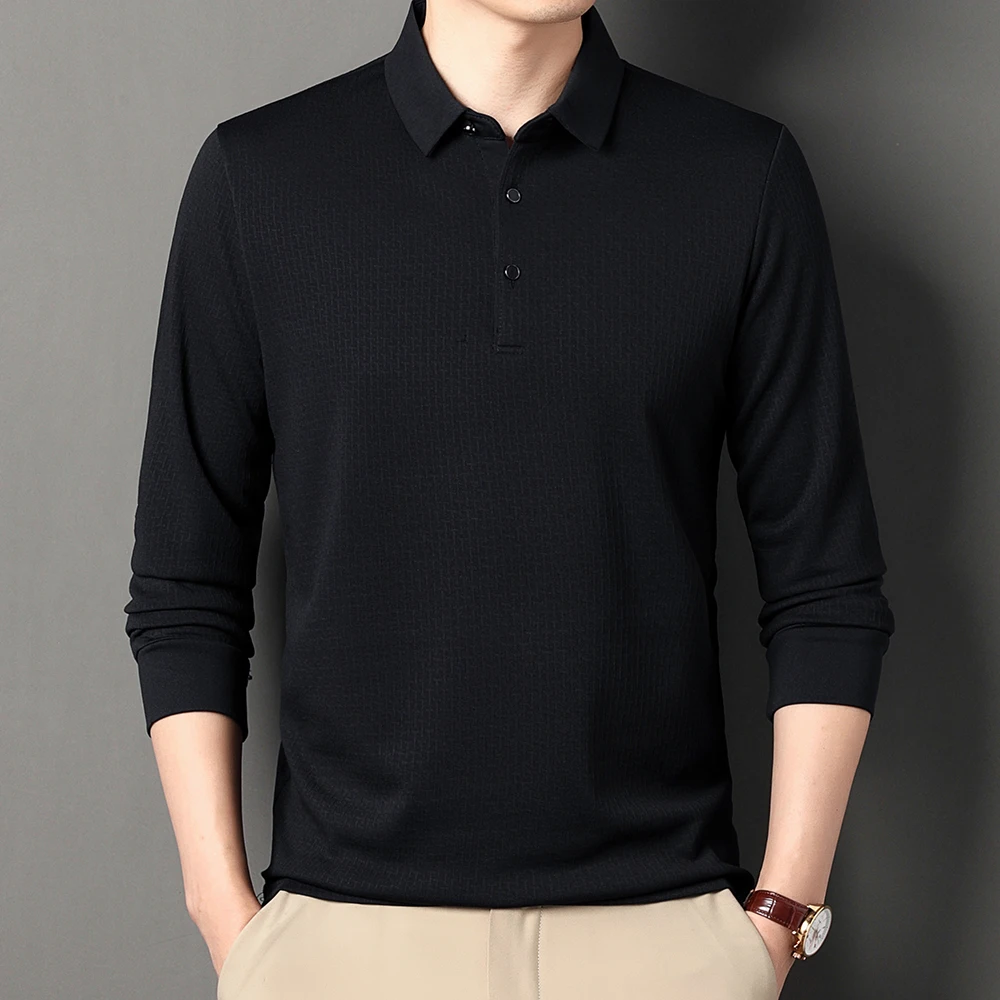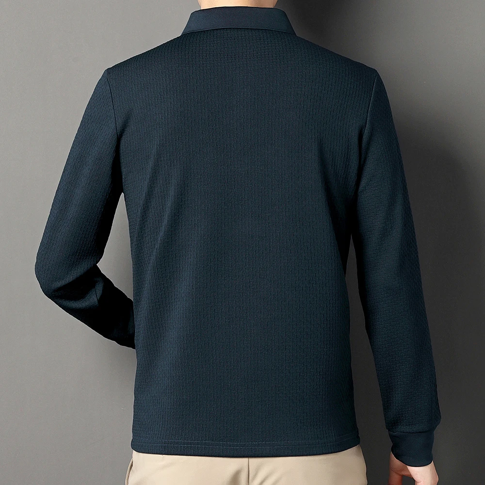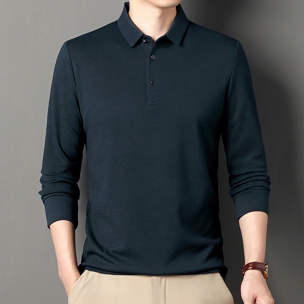 New Men’s Lop-up Hollow Long-sleeved Polo Shirt Breathable Business Fashion T-Shirt Male Golf T-Shirt Male 4XL