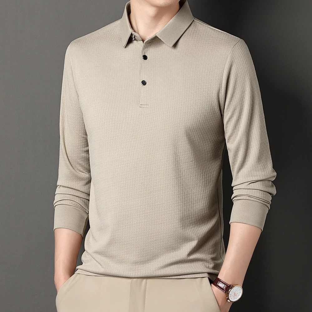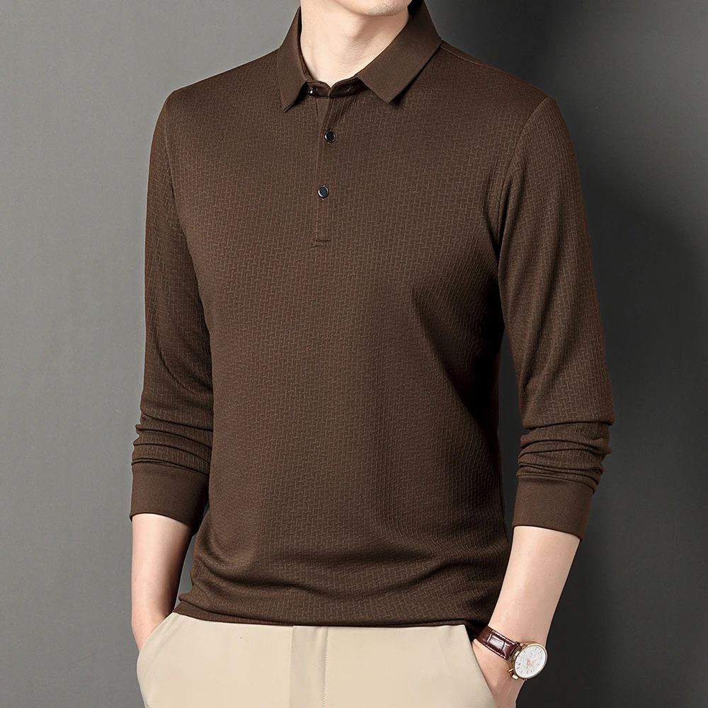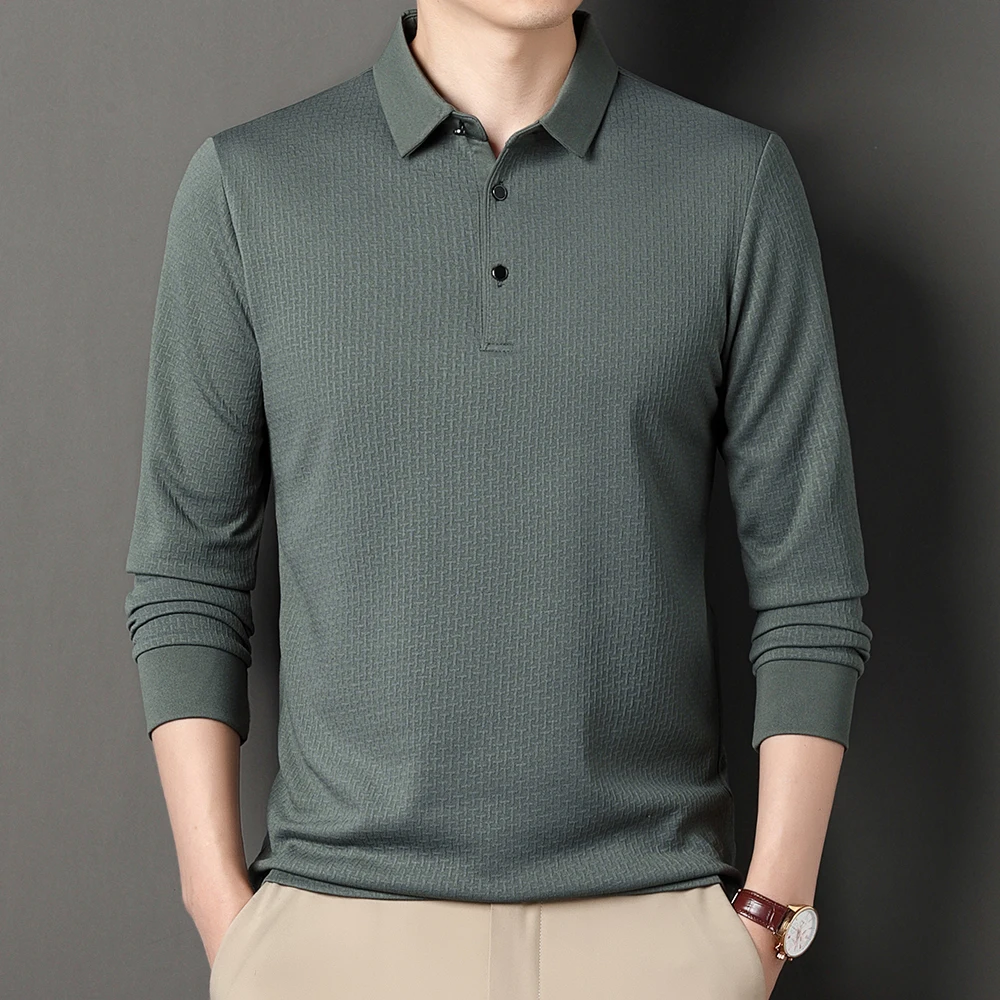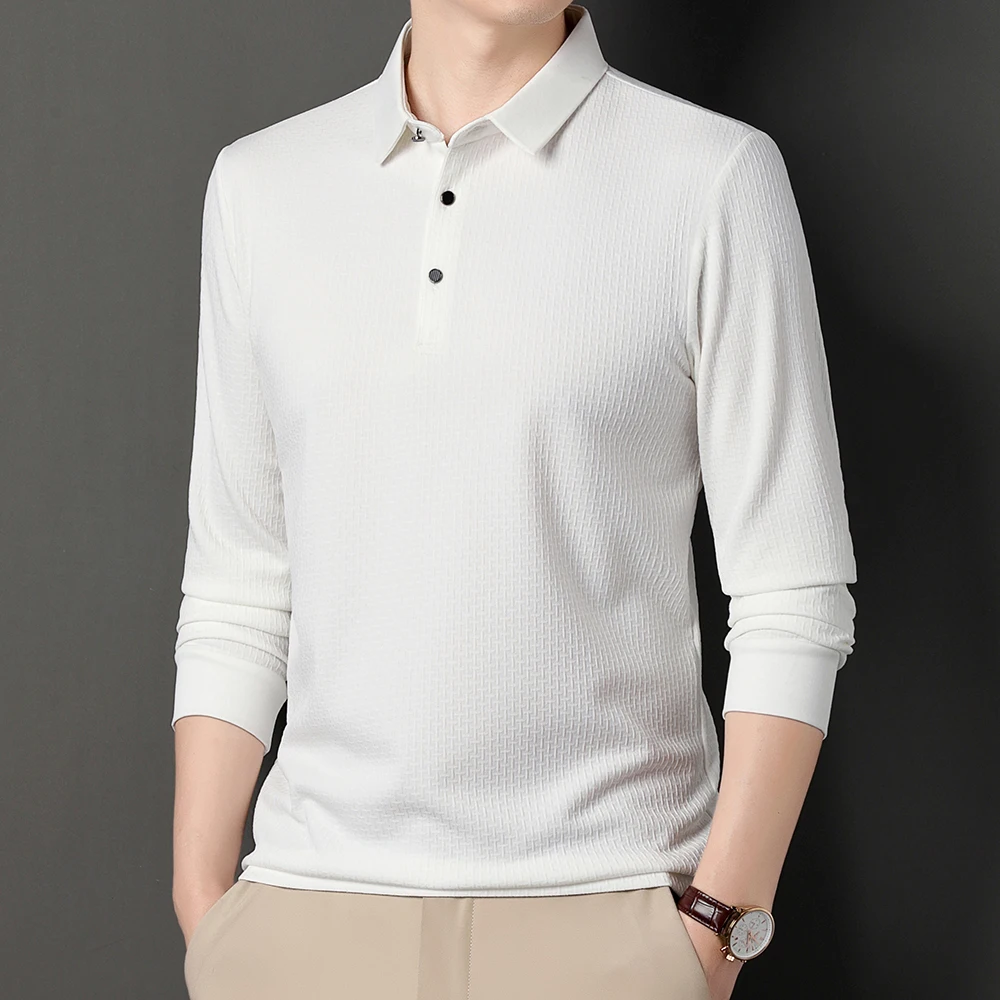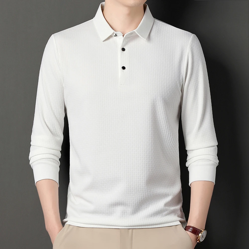 New Men’s Lop-up Hollow Long-sleeved Polo Shirt Breathable Business Fashion T-Shirt Male Golf T-Shirt Male 4XL