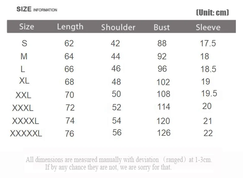 This size information is just for reference only, differences due to manual measurement,please check the above detailed measurement to choose the correct size, and allow 1-2cm (0.4-0.8″) thanks!