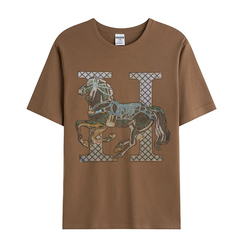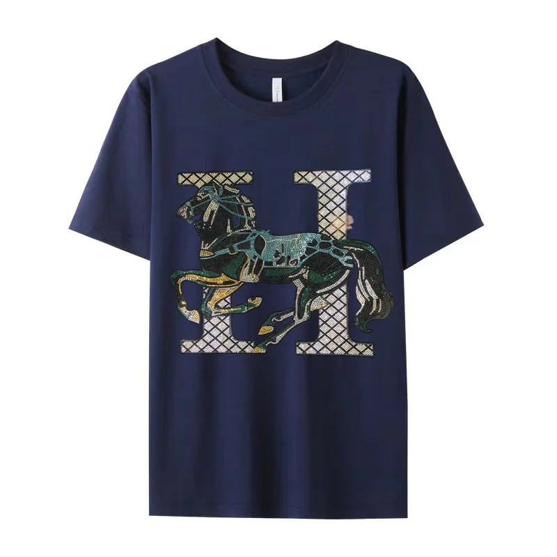 New men’s short sleeve cartoon cotton casual T-shirt Comfortable high quality diamond T-shirt
