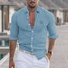 New Men’s Summer Cotton And Linen Lapel Beach Shirt Long Sleeve Solid Color Hawaiian Holiday Wear X Patterned Shirt