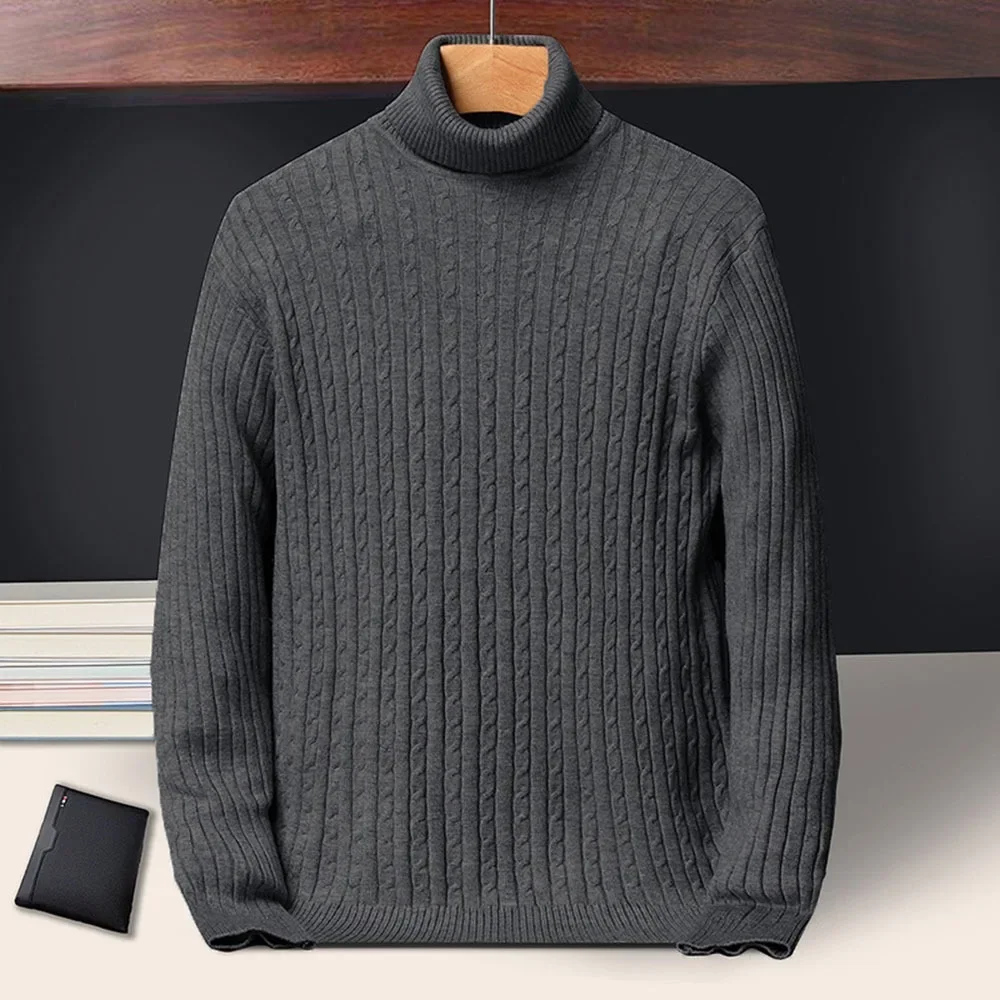New Men’s Turtleneck Sweaters Autumn Knitted Striped Streetwear Warm Long Sleeved Pullover Solid Color Basic Style Casual Tops