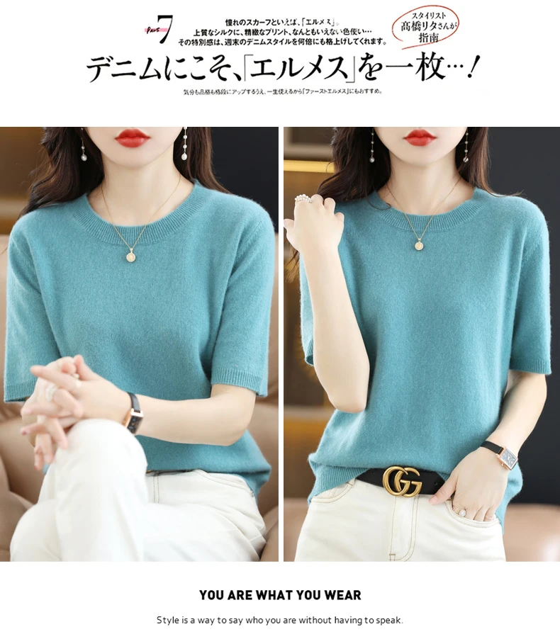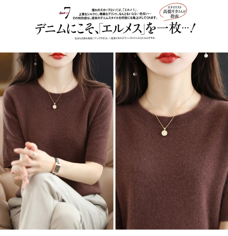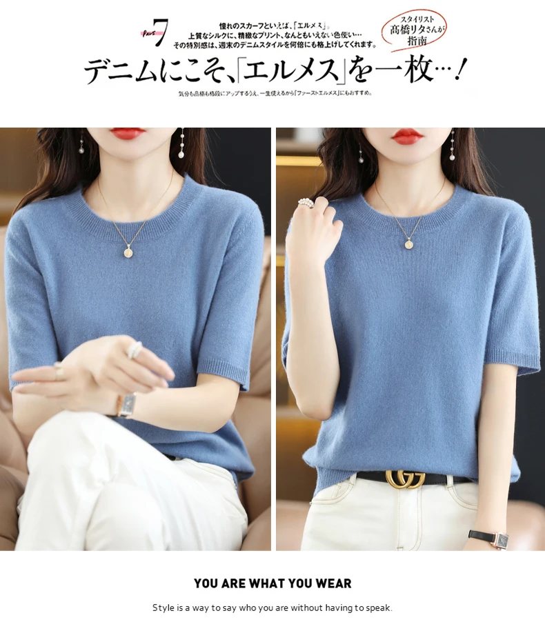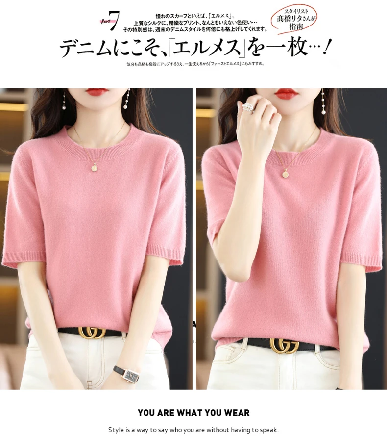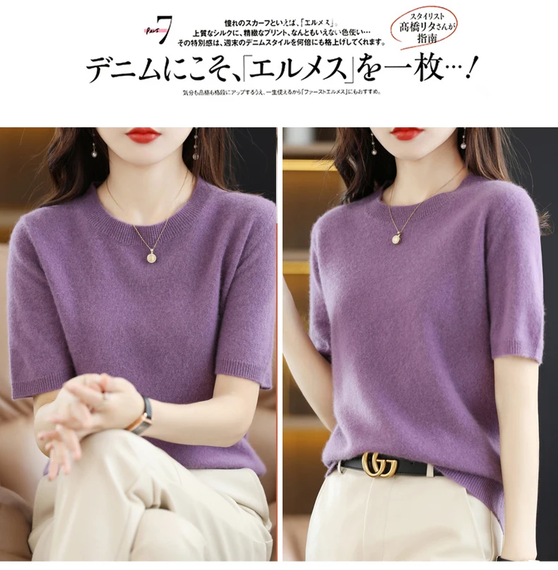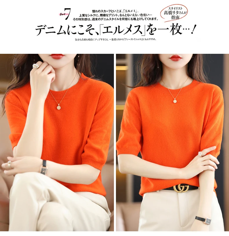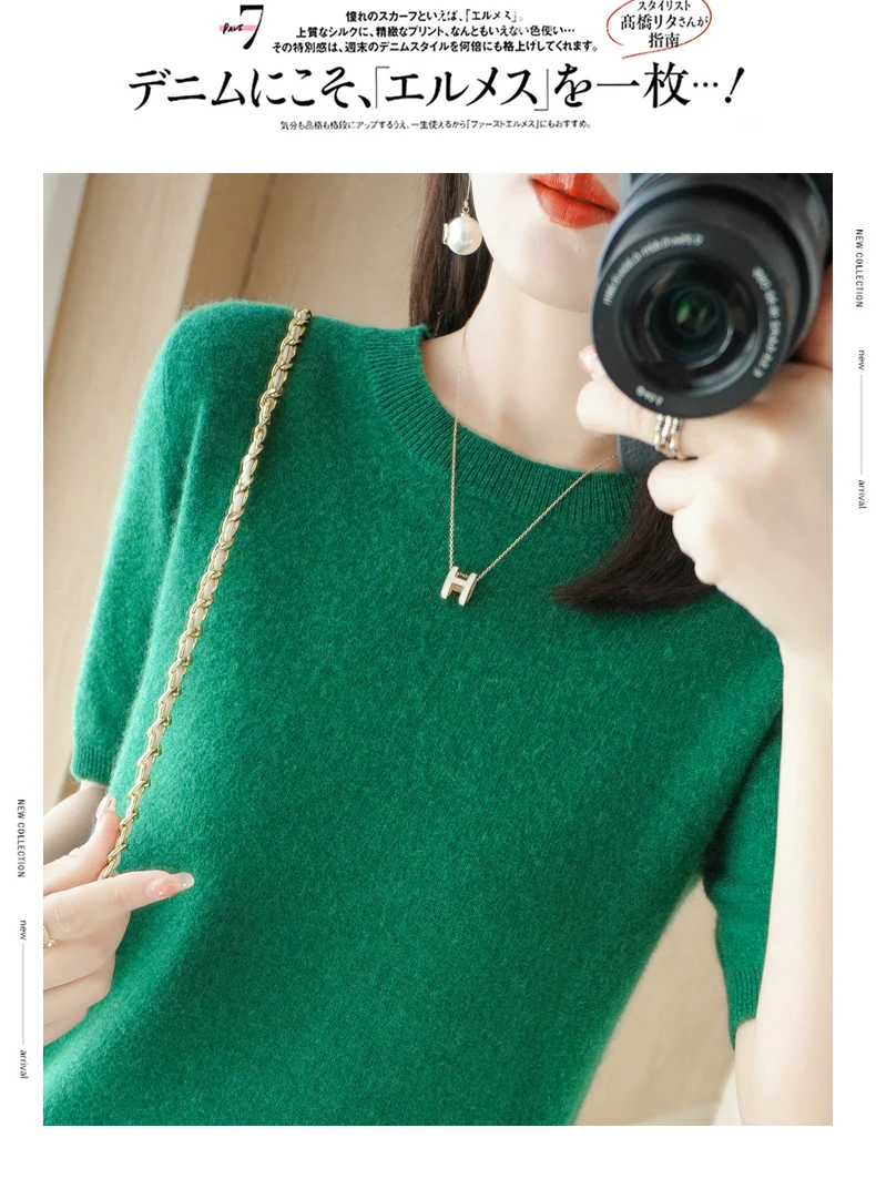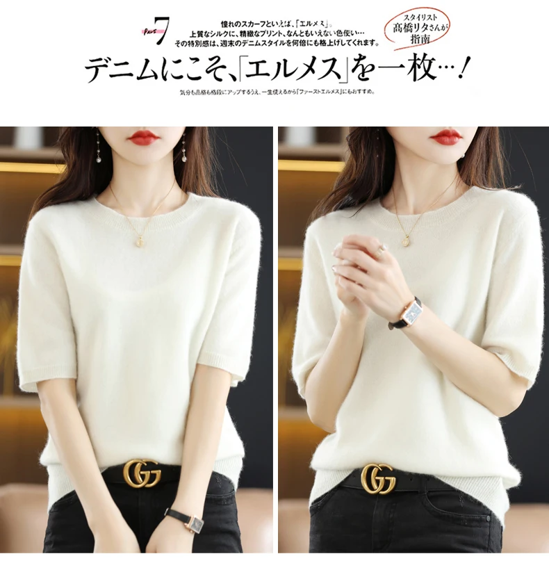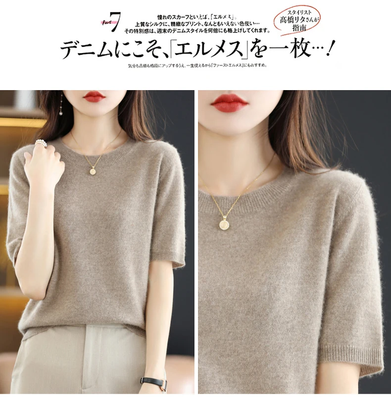 New Short-sleeved Knitwear Women O-neck T-shirt Wool Cotton Blend Pullover Vest Sprig Summer Bottoming Tops Sweater Solid Soft