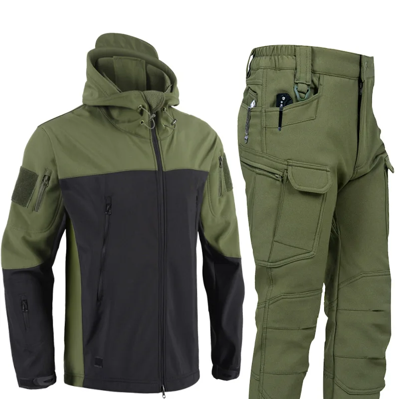 New Splicing Second-generation Anti-shark Skin Feel Jacket Pants Set Fleece Waterproof Soft Shell Jacket Set