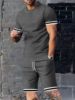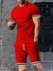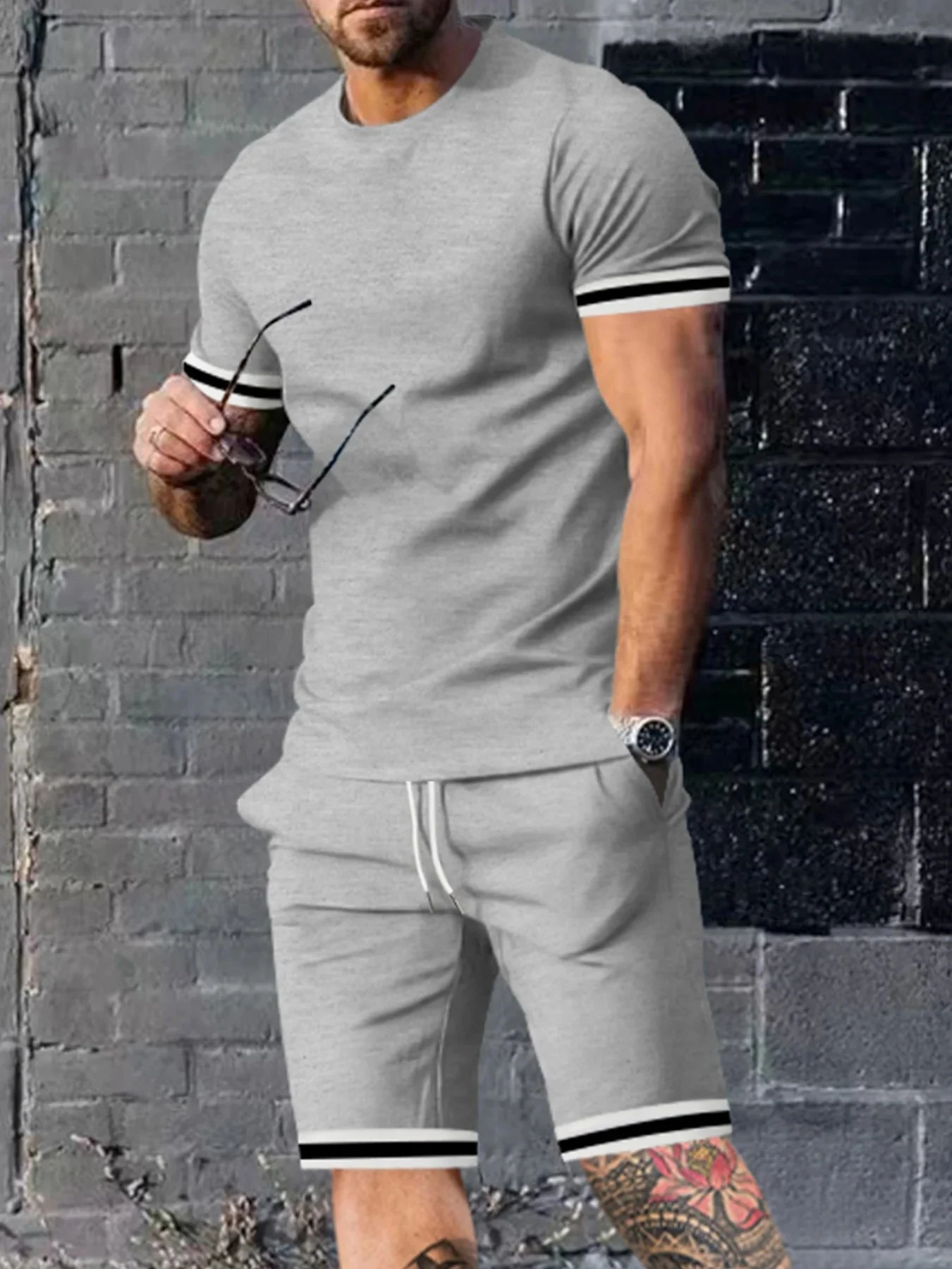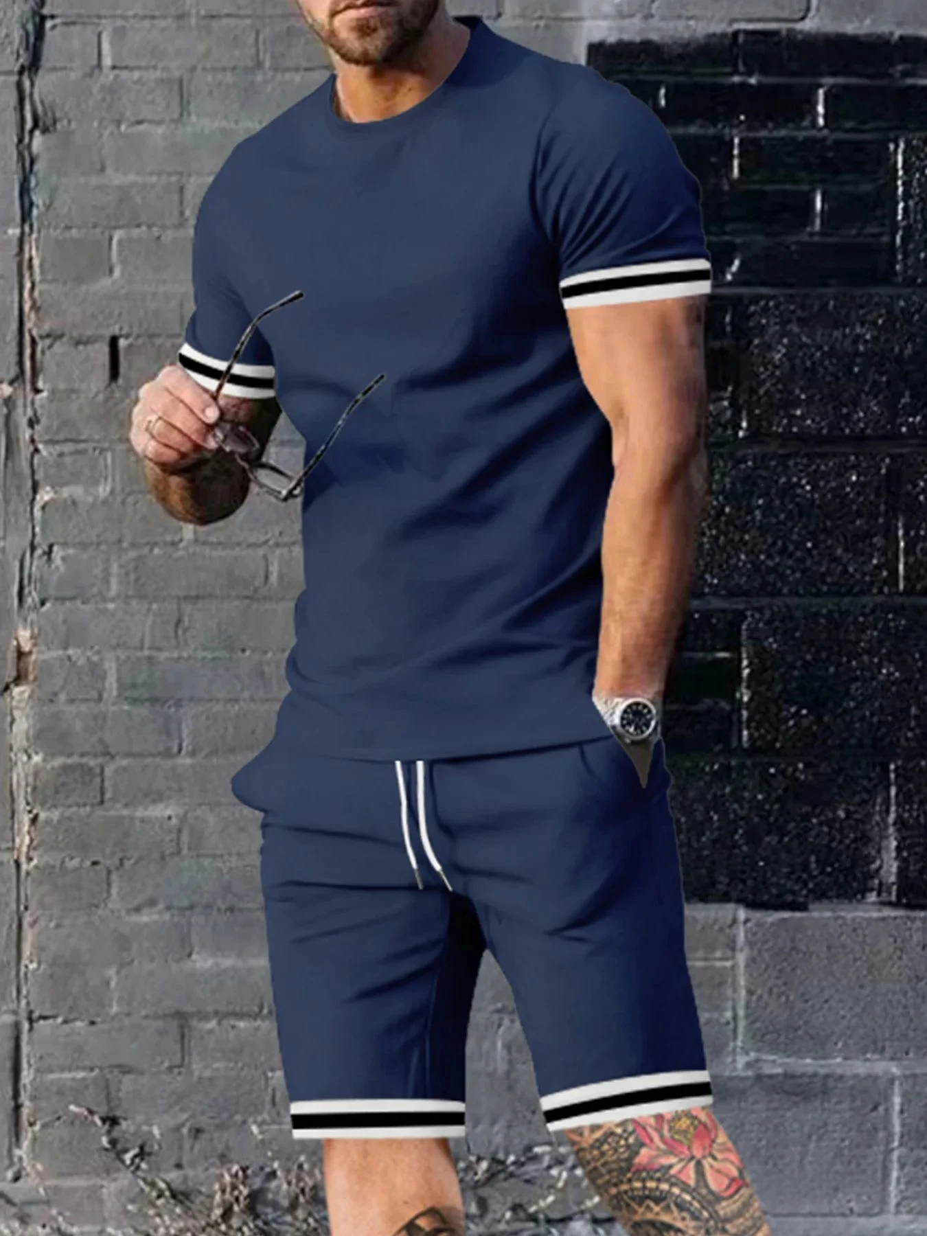 New summer men’s minimalist striped printed comfortable and breathable round neck T-shirt shorts set for outdoor casual wear