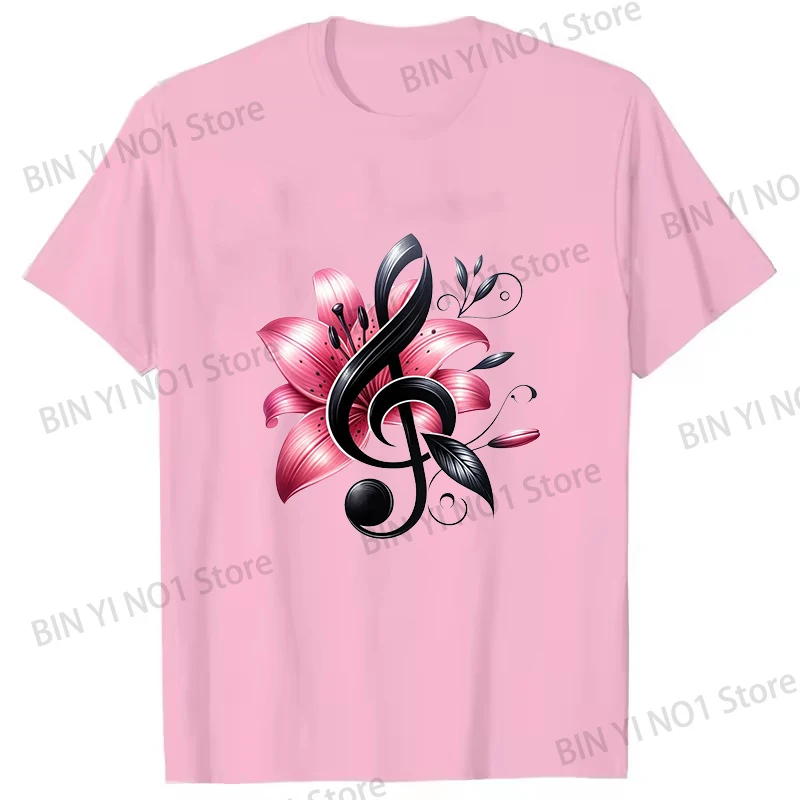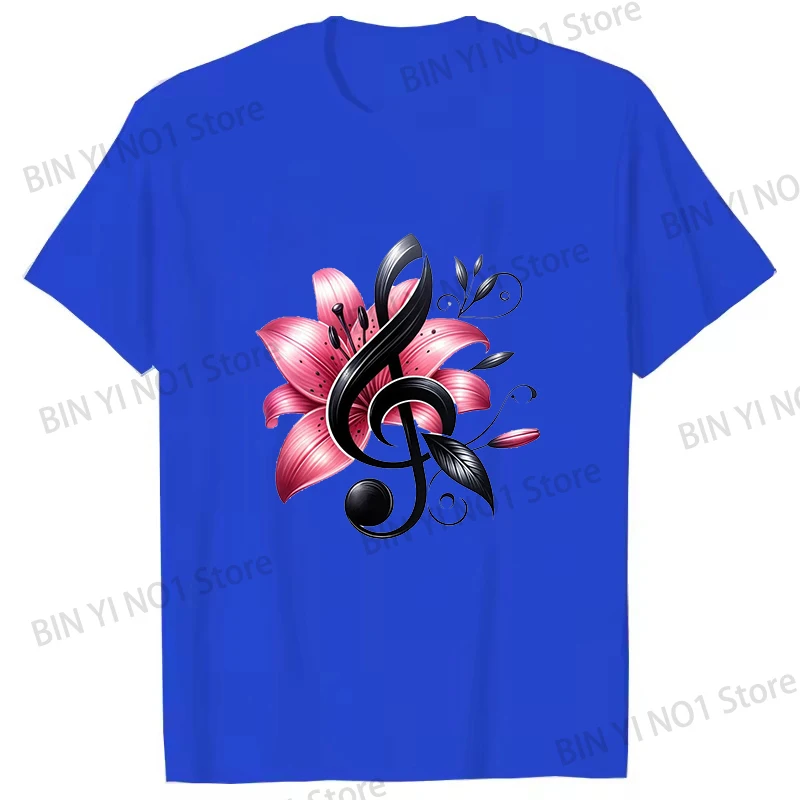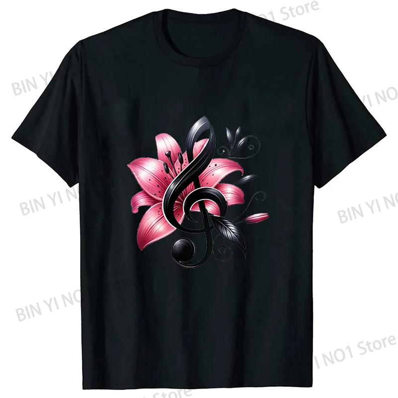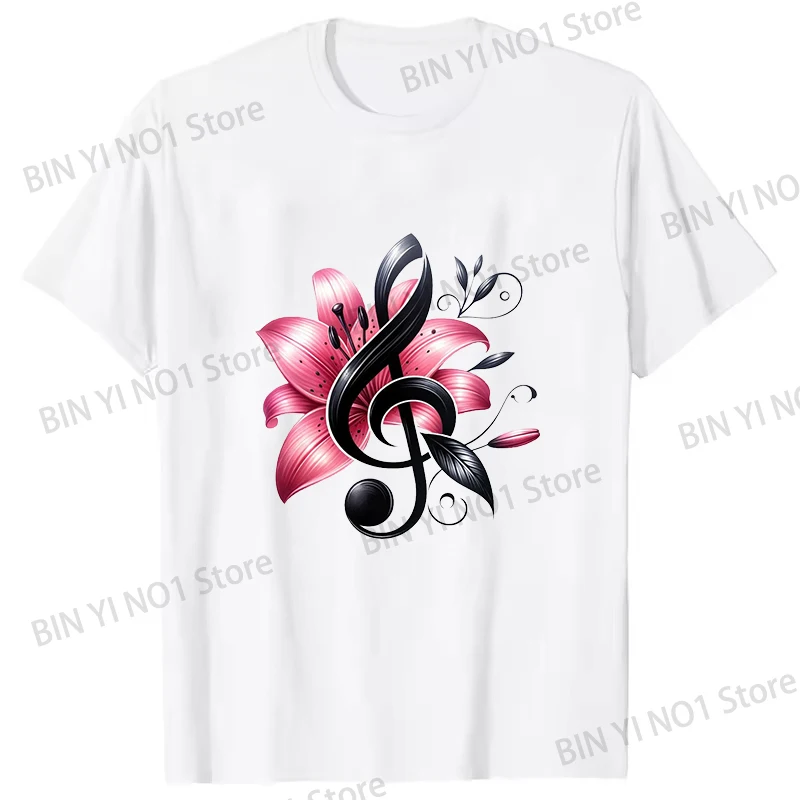New Women’s Men’s Fashion T Shirts Funny Music Flower Print T Shirt Summer Unisex Loose Casual Plus Size Graphic Tee Tops