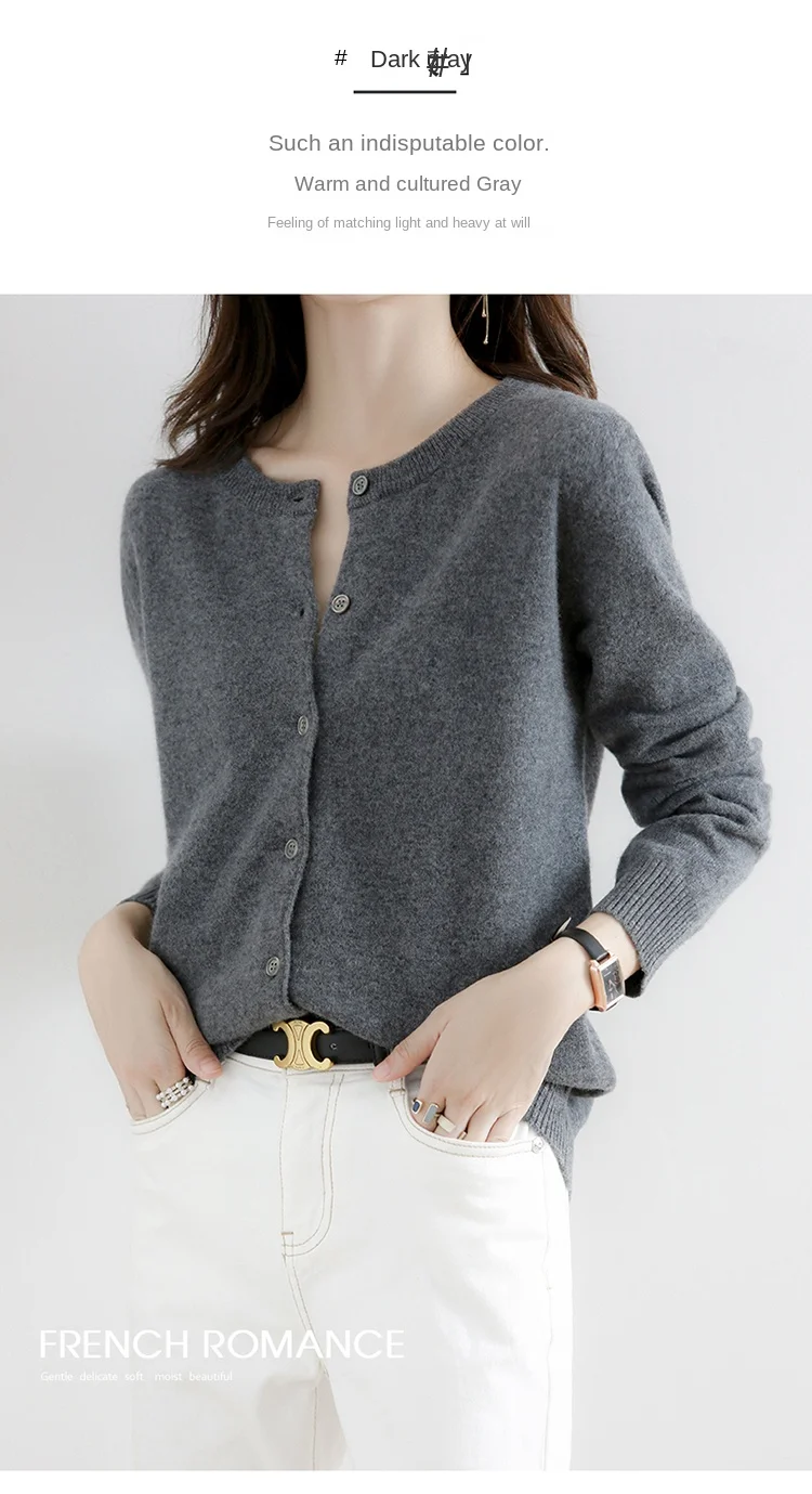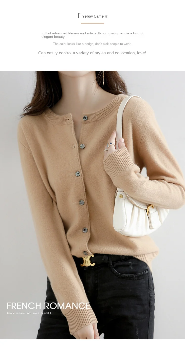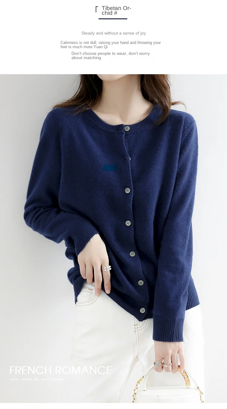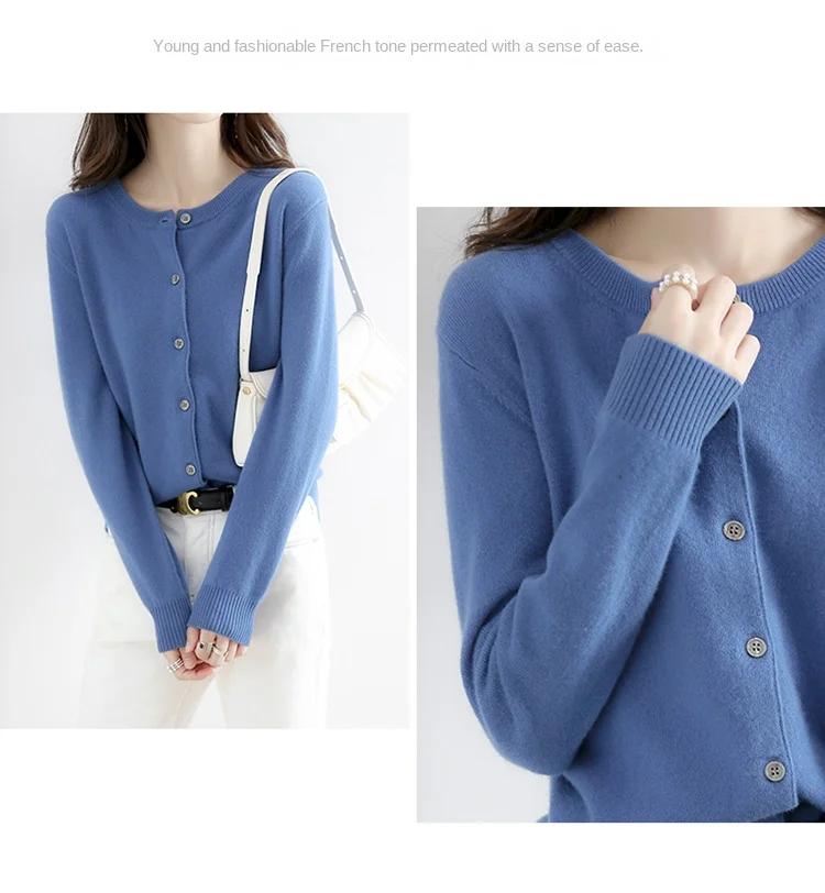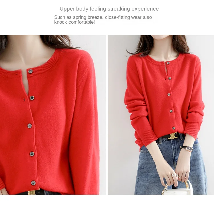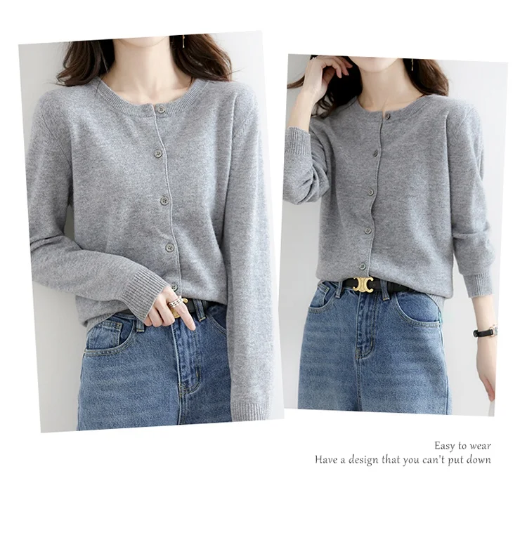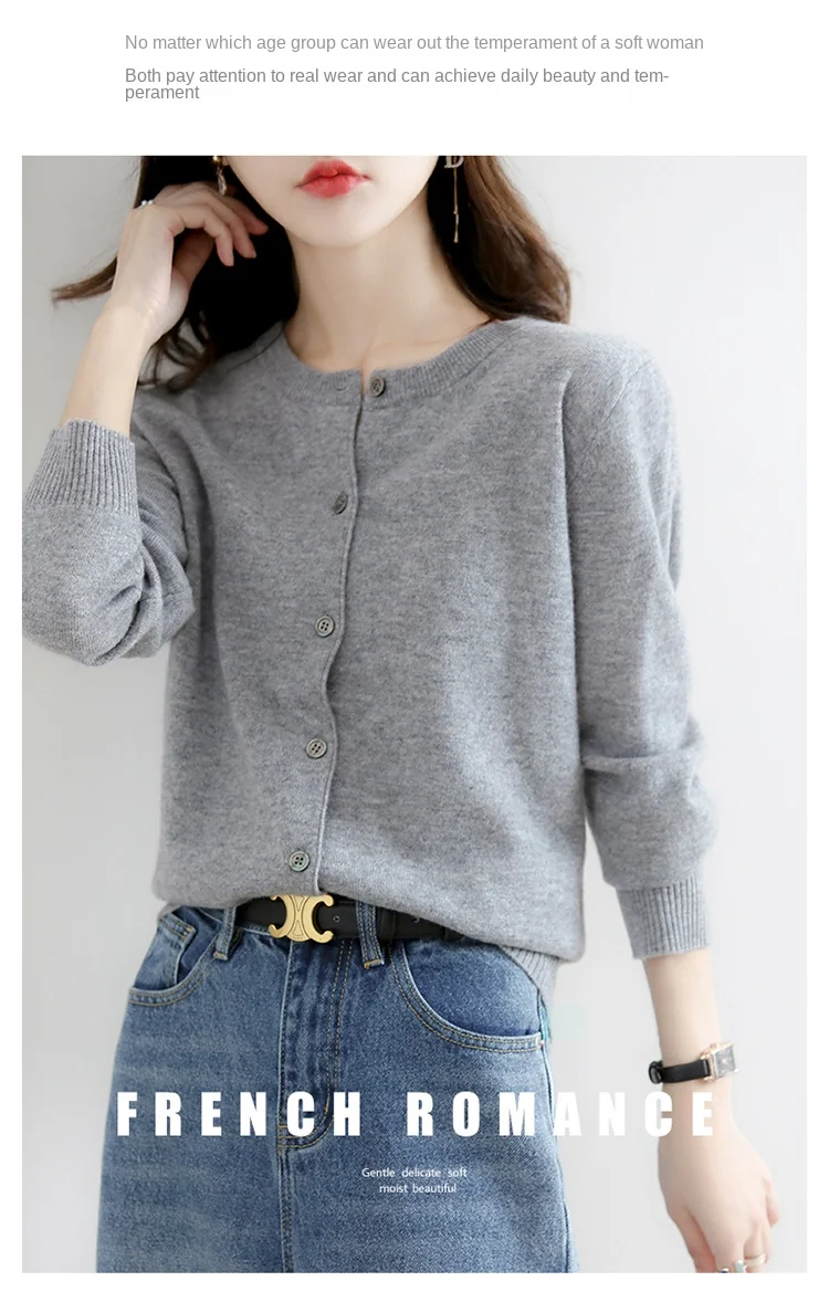 New Worsted Spring And Autumn Women Cardigan Round Neck Knitwear Solid Color Fashion High-grade Knitwear-ZD-021