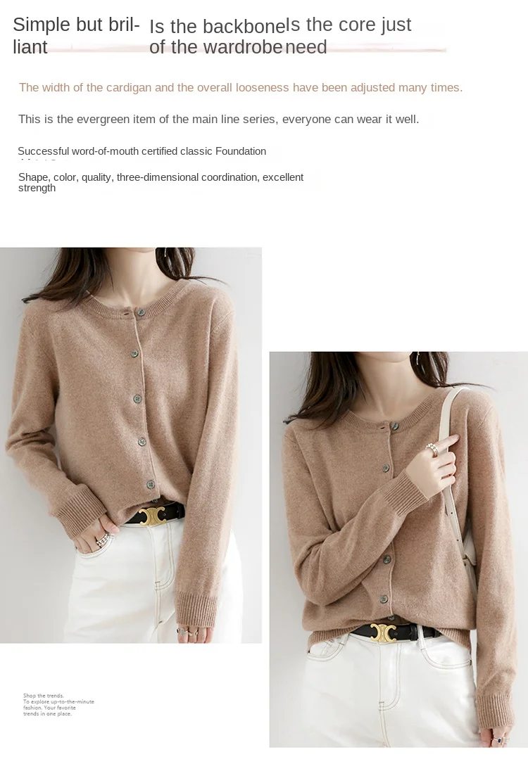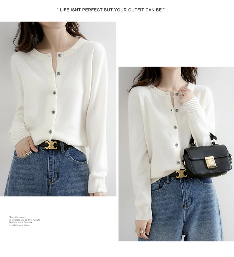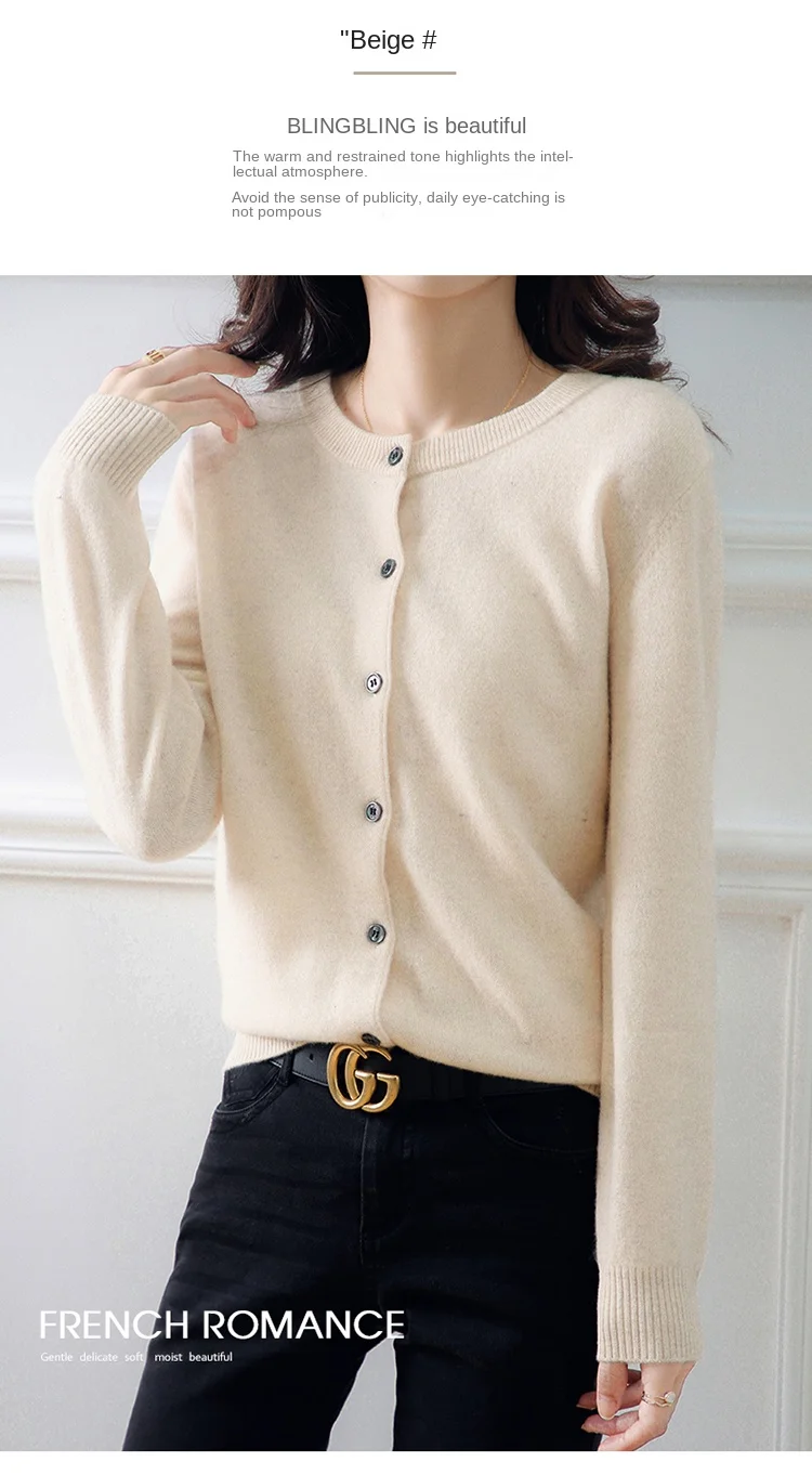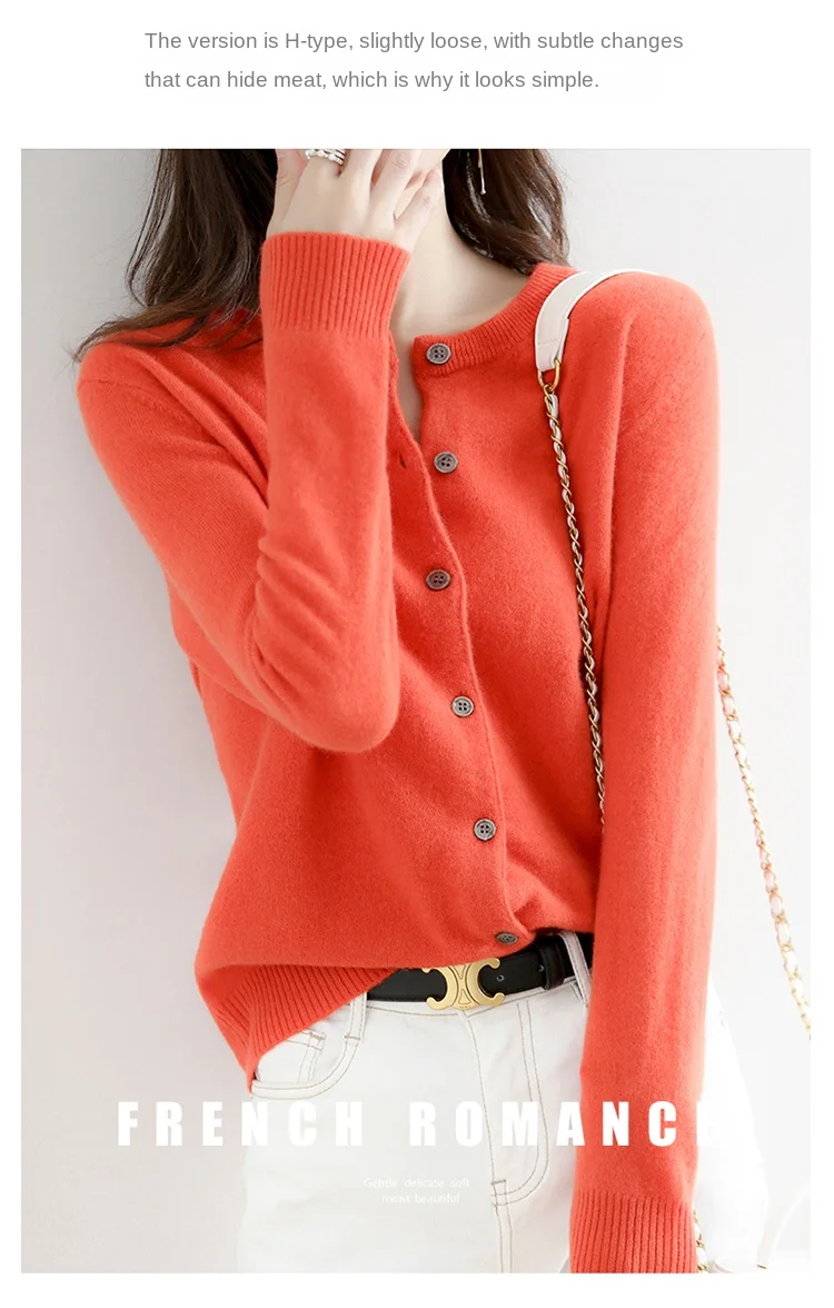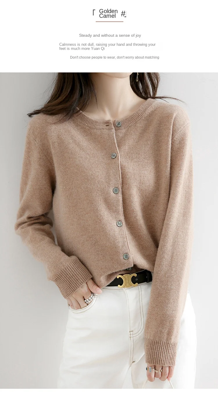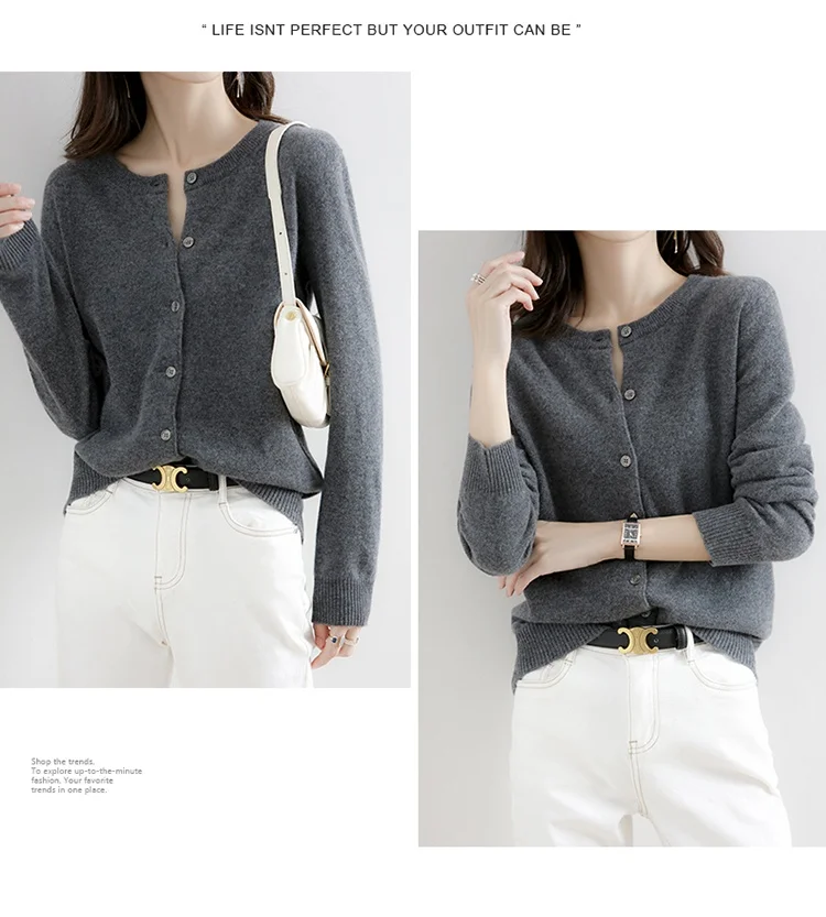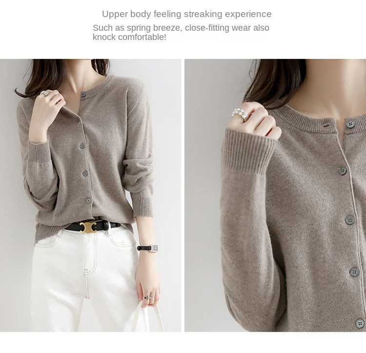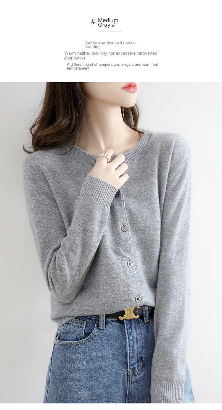 New Worsted Spring And Autumn Women Cardigan Round Neck Knitwear Solid Color Fashion High-grade Knitwear-ZD-021