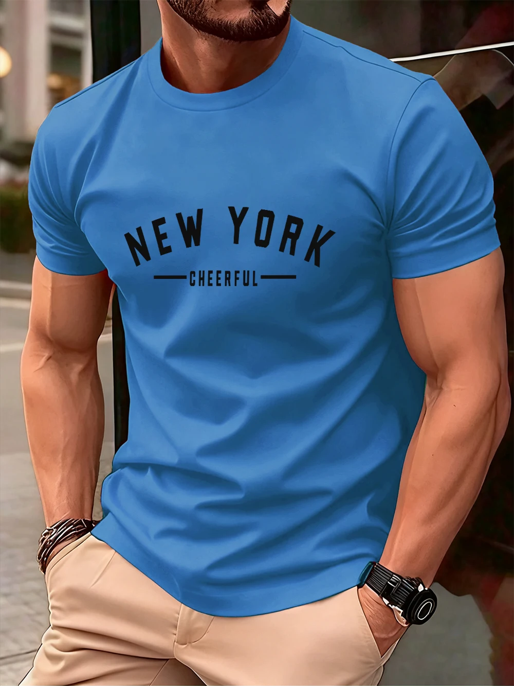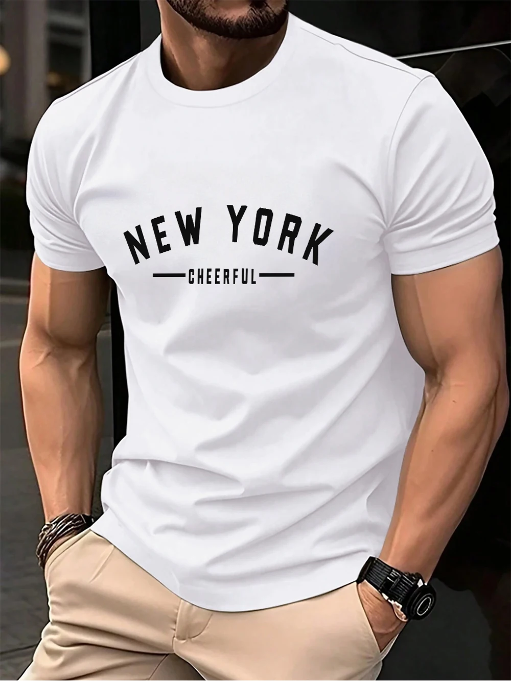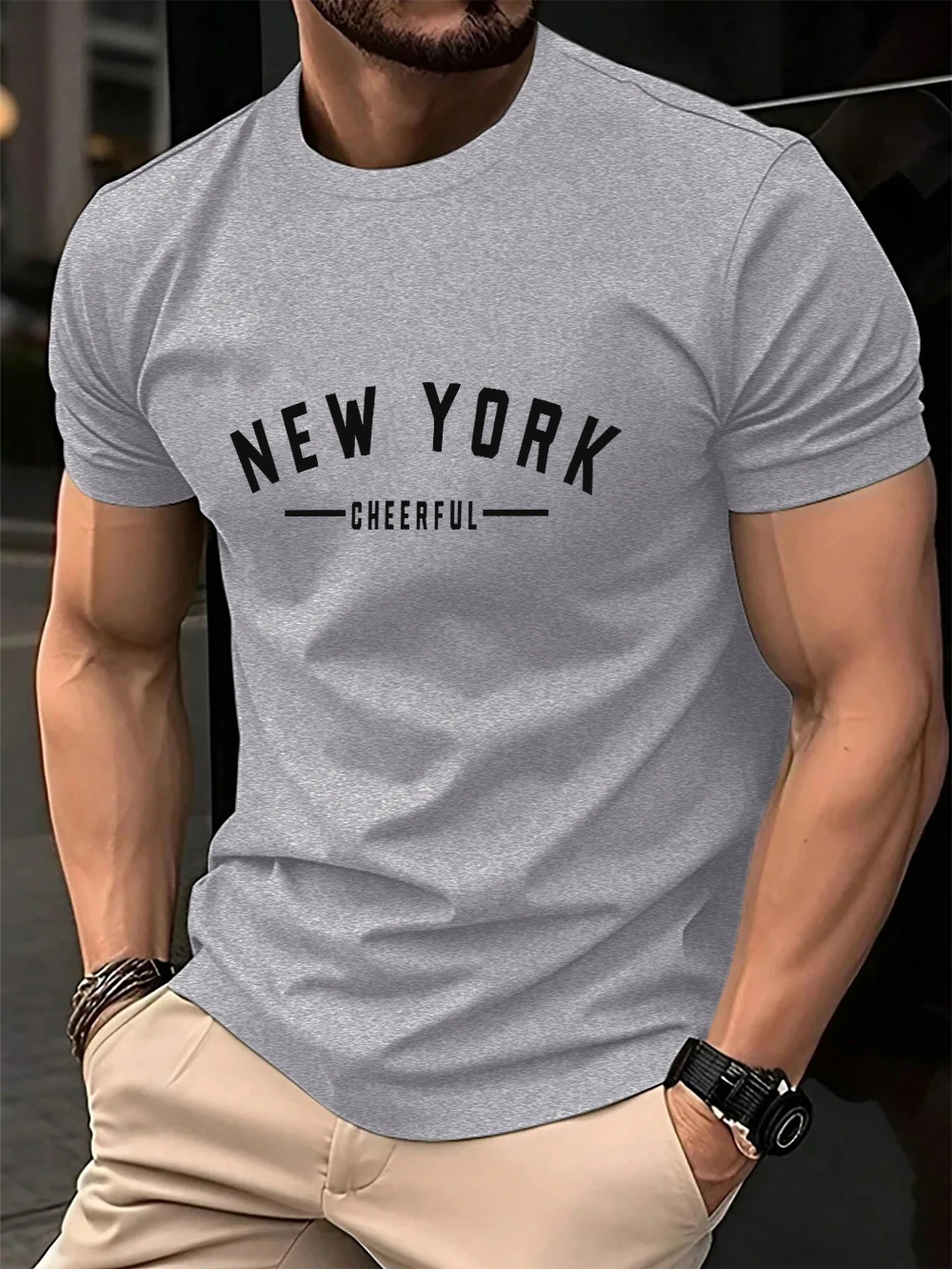 New York Cheerful Print Cotton T-Shirts Mens Summer Oversized O-Neck T Shirt Short Sleeve Comfortable Soft Tops Basic Clothes