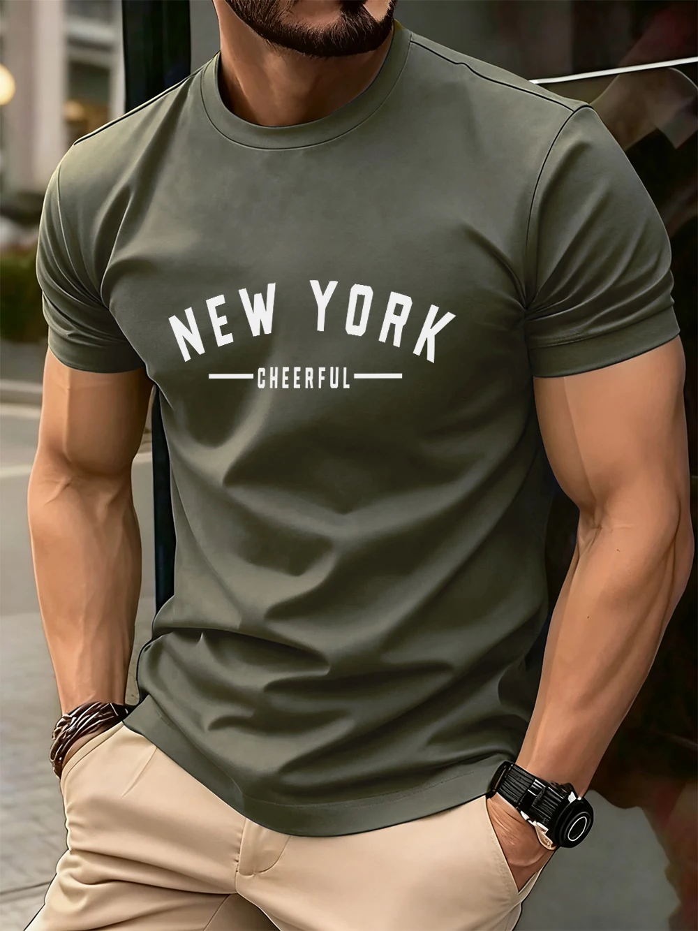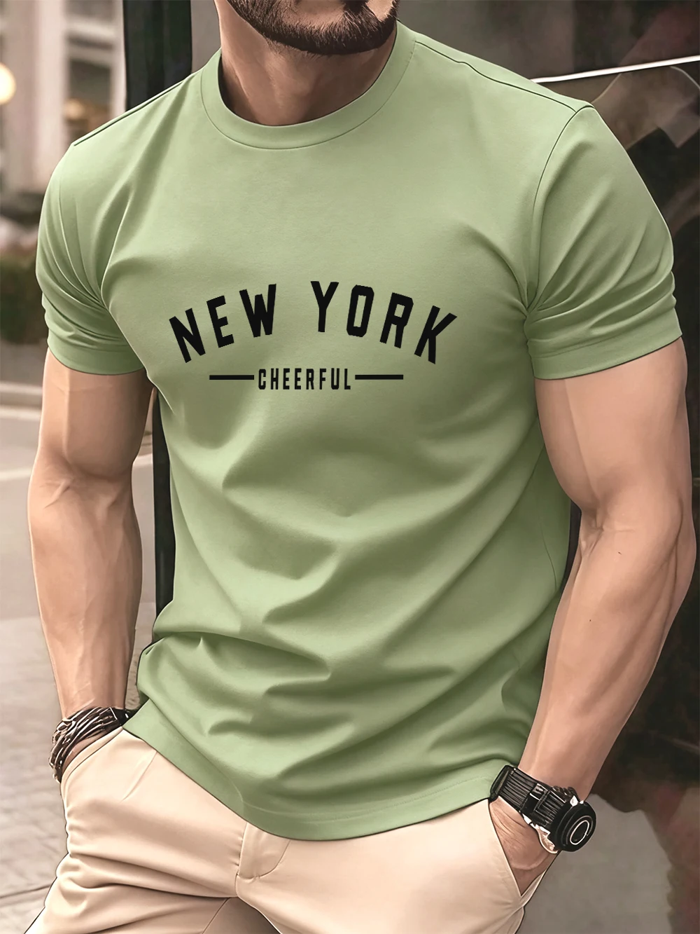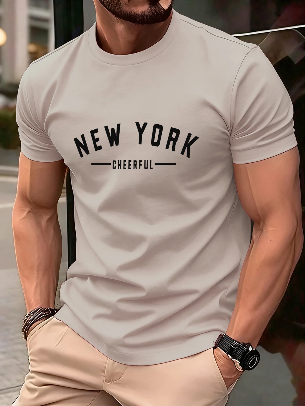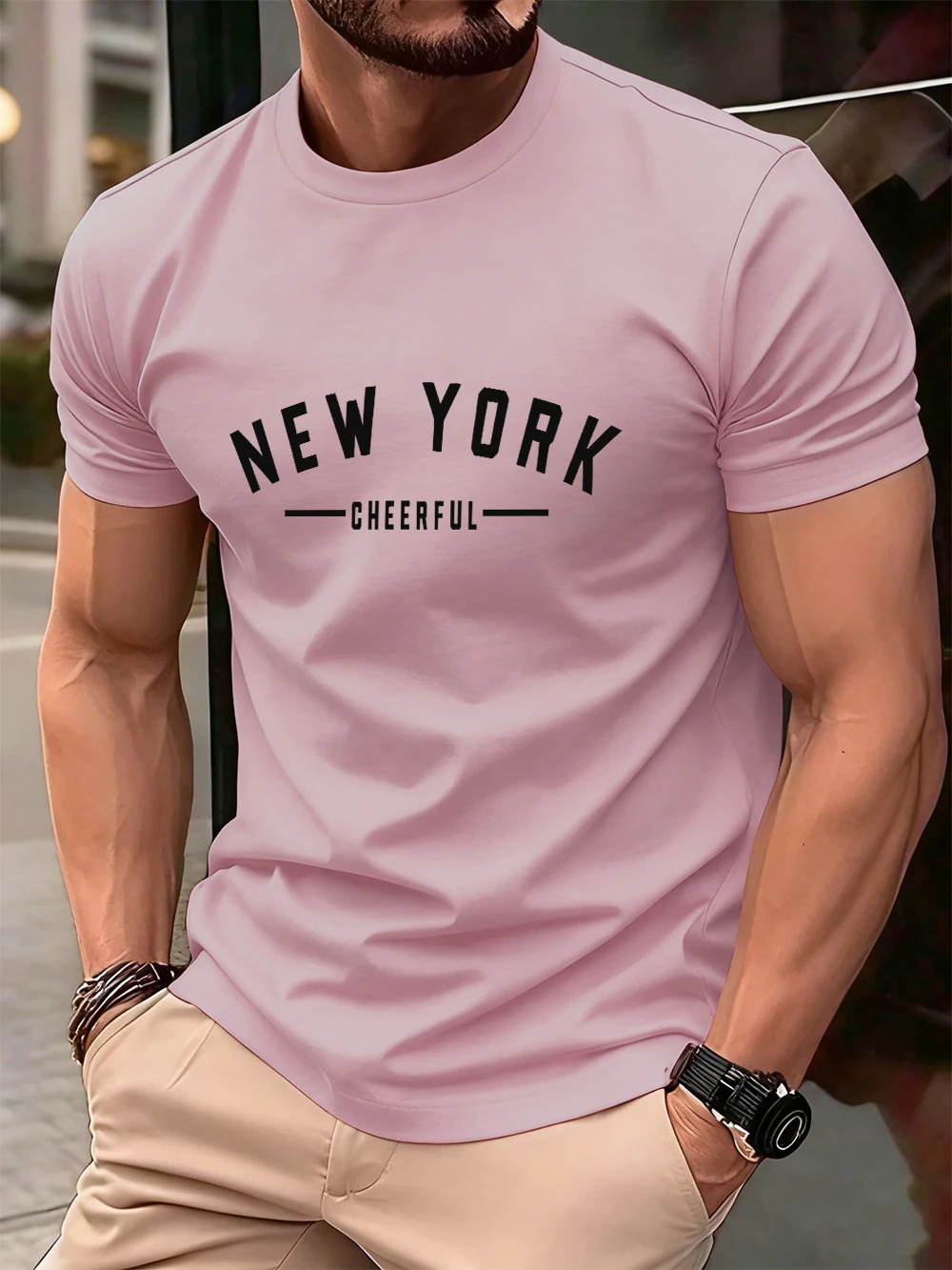 New York Cheerful Print Cotton T-Shirts Mens Summer Oversized O-Neck T Shirt Short Sleeve Comfortable Soft Tops Basic Clothes