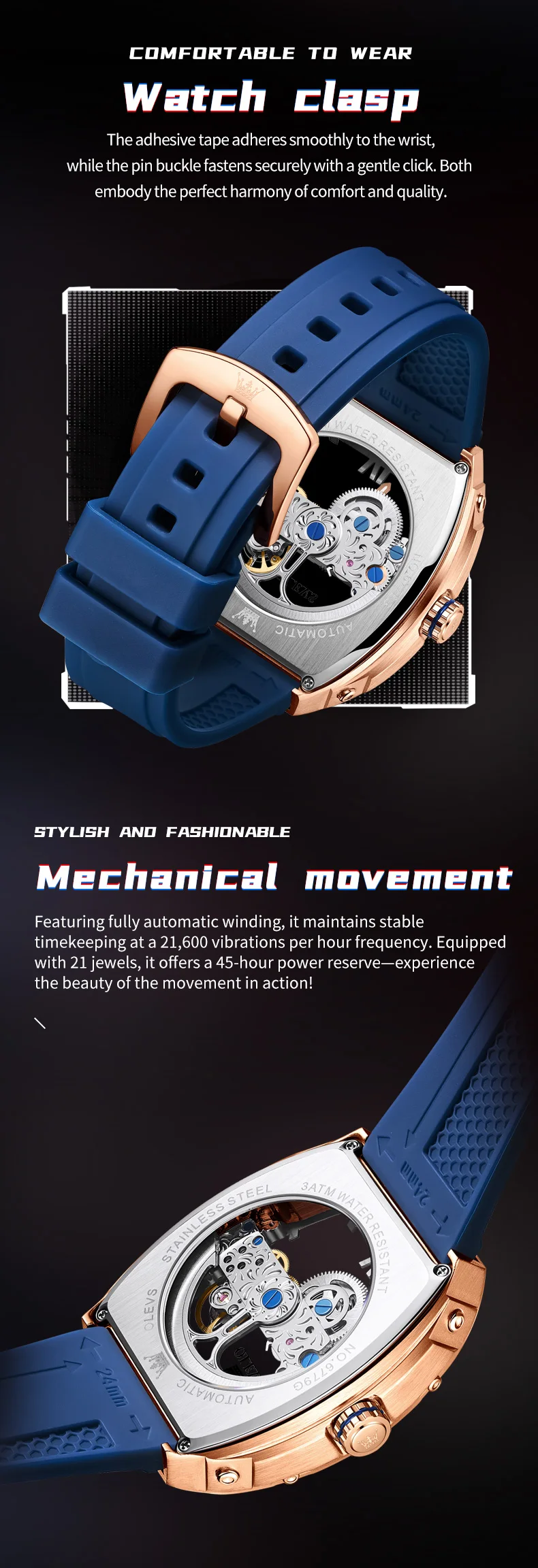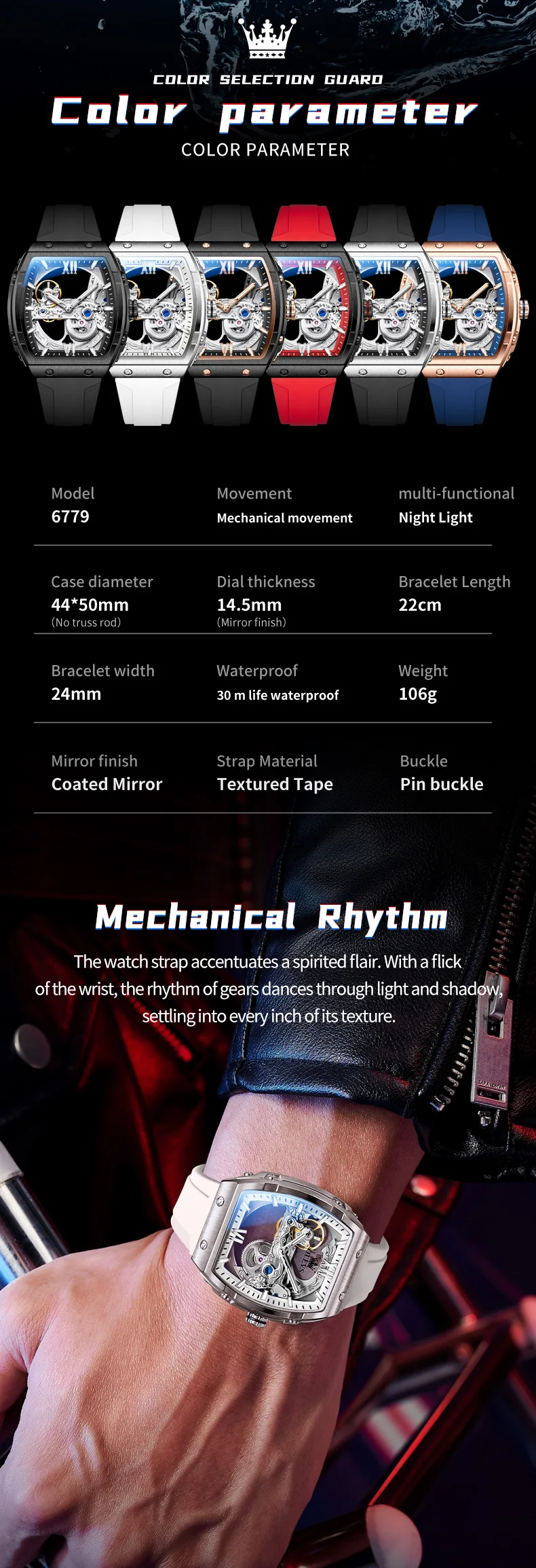 OLEVS 6779 Automatic Men Watch Skeleton 50mm Large Dial Waterproof Silicone Strap Mechanical Watch for Men