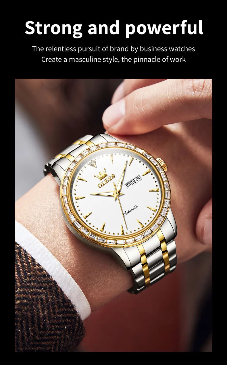 OLEVS 7019 Mechanical Automatic Mens Watches Business Dress Stainless Steel Original Waterproof Luxury Man Watch