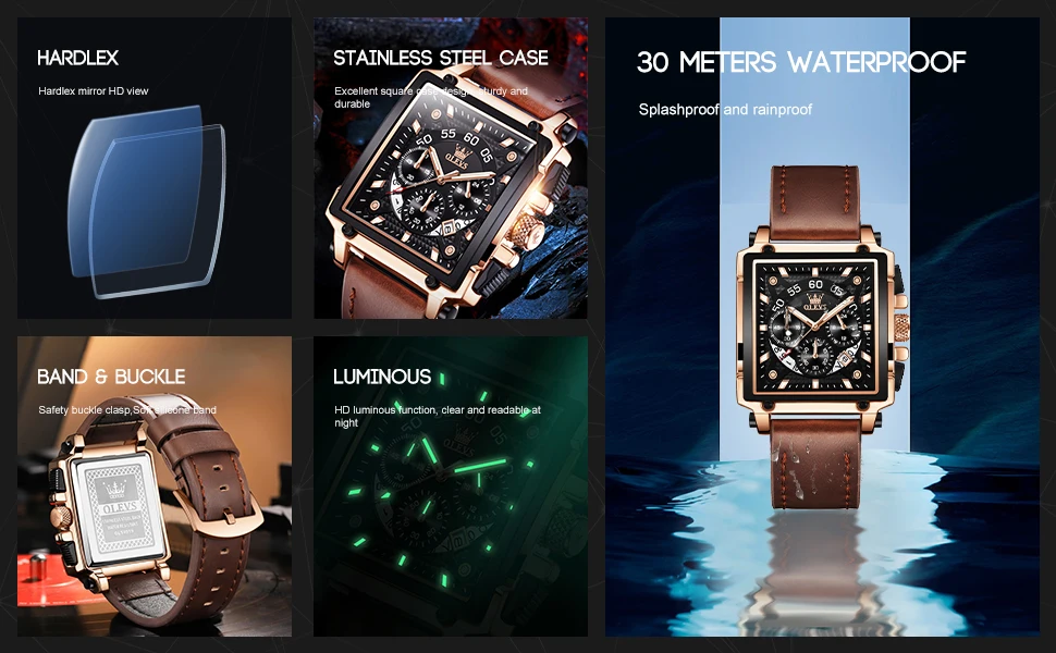 OLEVS Luxury Men Watch Waterproof Square Watch for Men Luminous Top Brand Quartz Wristwatch Fashion watch man luxury original
